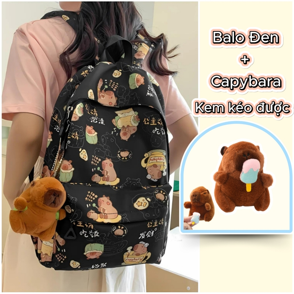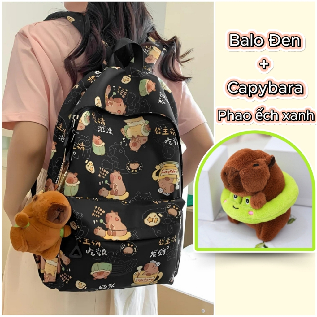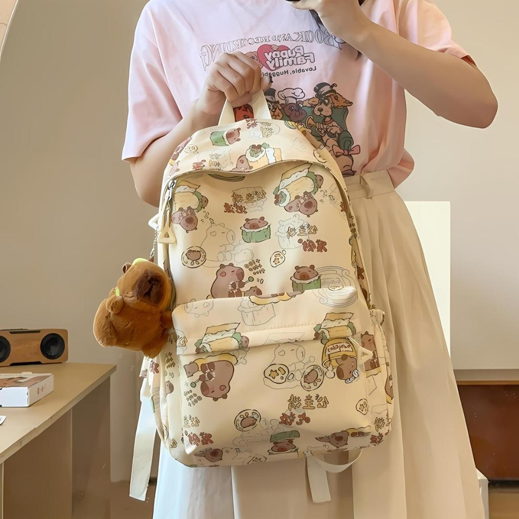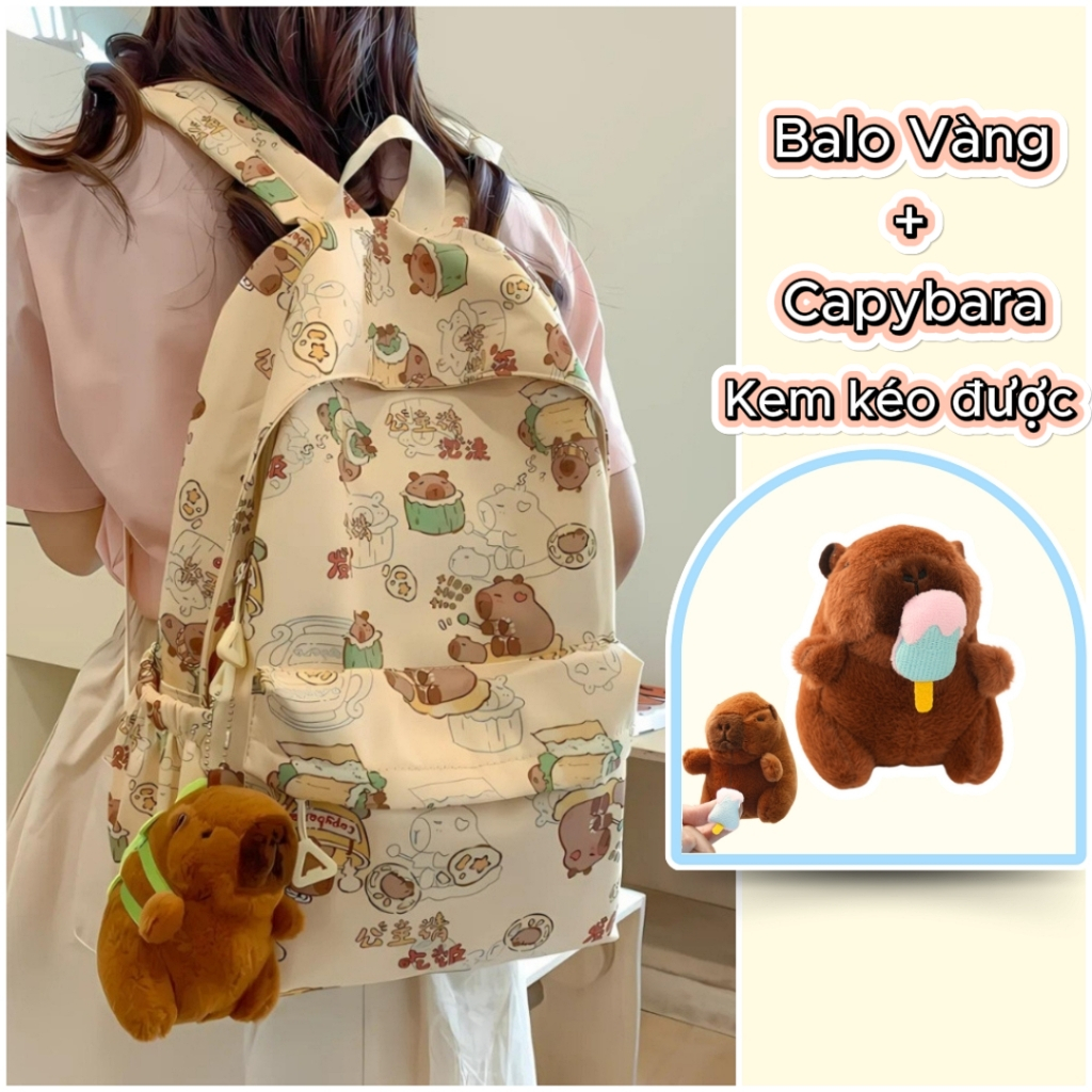 Balo Nữ Đi Học Balô Capybara Học Sinh Dễ Thương Kháng Nước Form Lớn Đựng Laptop 15.6 Inch Ulzzang