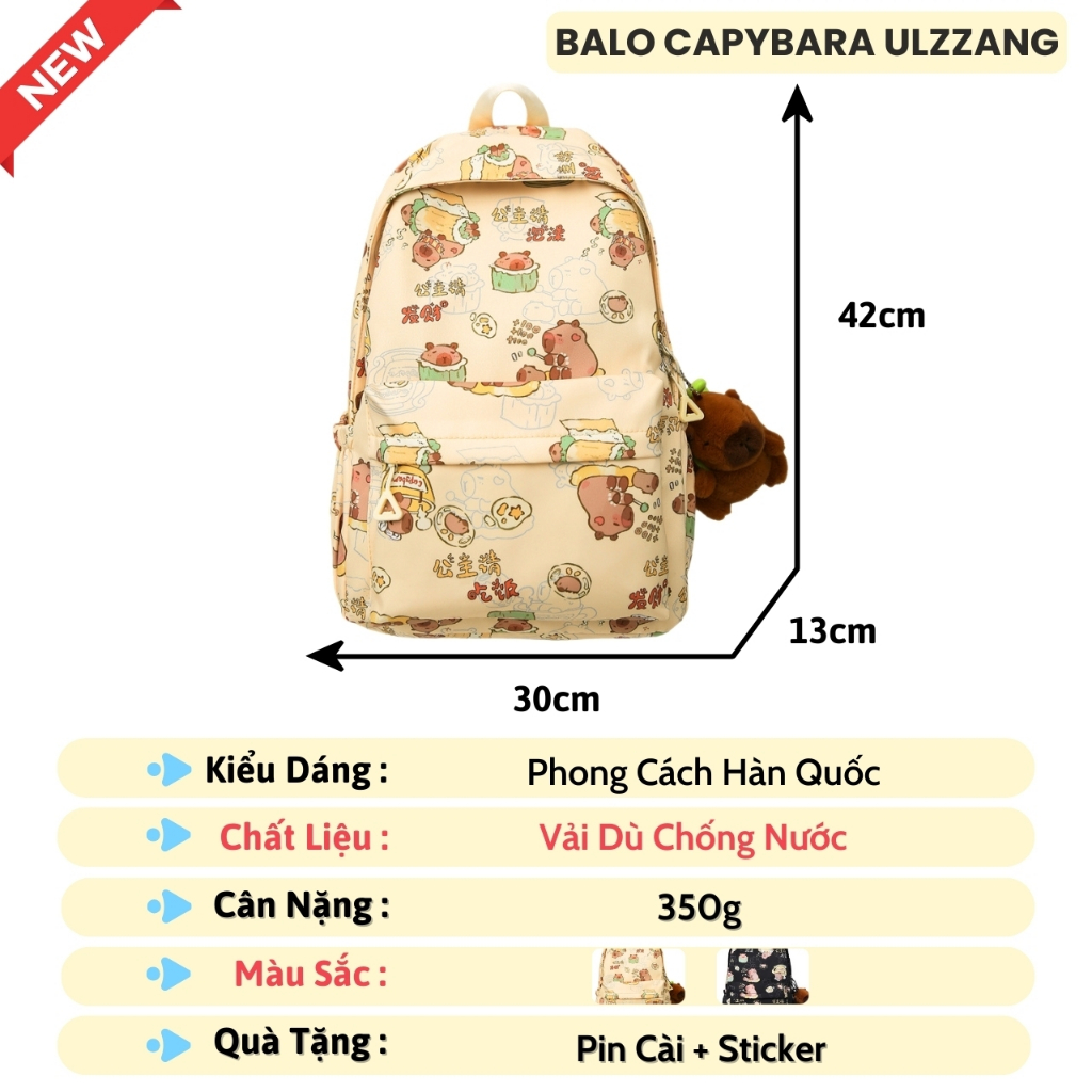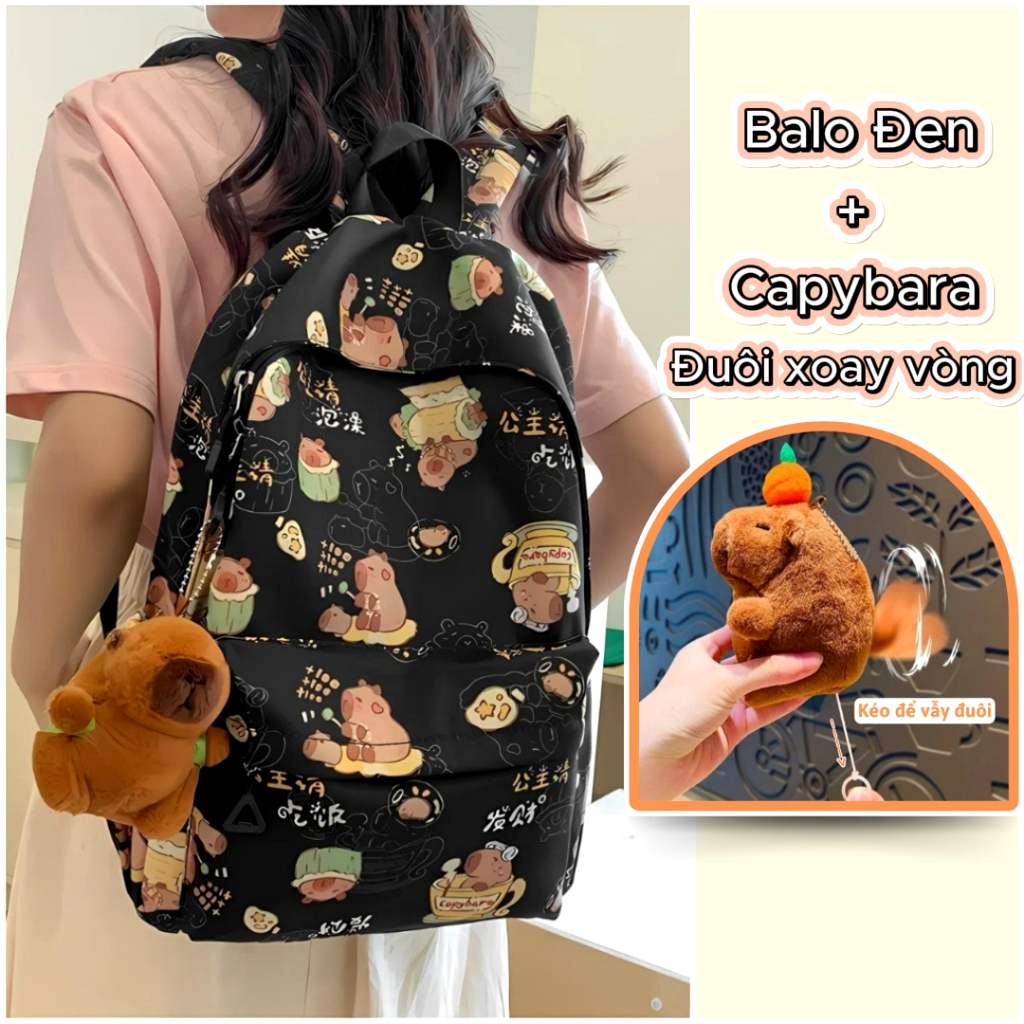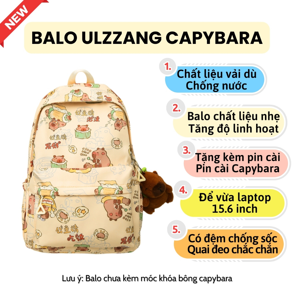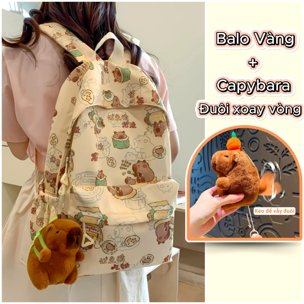 Balo Nữ Đi Học Balô Capybara Học Sinh Dễ Thương Kháng Nước Form Lớn Đựng Laptop 15.6 Inch Ulzzang