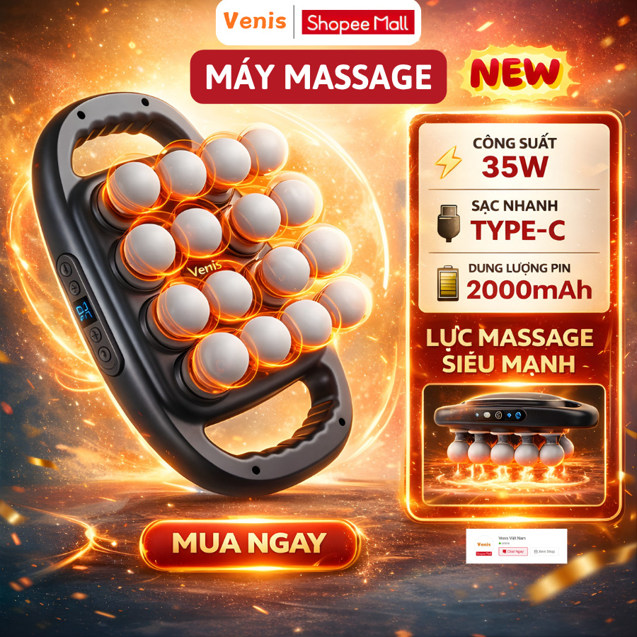 Máy Massage Cầm Tay MEGUN 16 Đầu, 9 Chế Độ 9 Cấp Độ Pin Sạc 2000mAh, Thư Giãn Toàn Thân