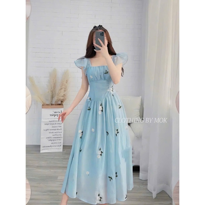 Đầm Nữ Voan Hoa Cao Cấp, Hai Dây Cánh Tiên, Có Mút, Dáng Maxi Dài, Đi Biển, Đi Chơi