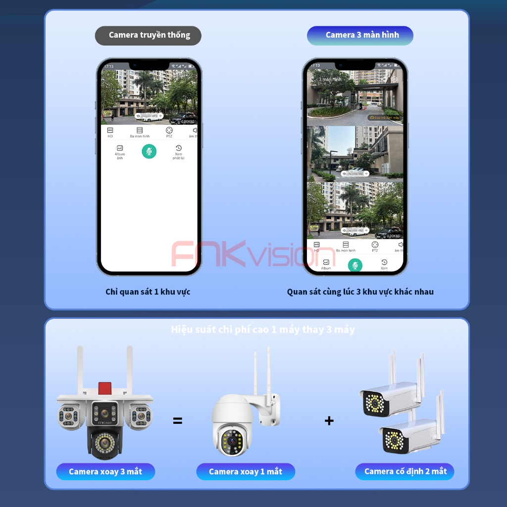 Camera Fnkvision Q42D 2 mắt D34 3 mắt Yoosee chống nước quan sát 360 độ cực rõ nét 12.0MP, thao tác qua điện thoại