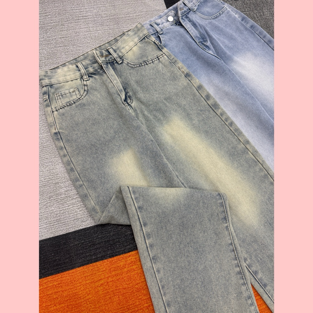 SUÔNG NẤM LÙN) QUẦN JEANS NỮ ỐNG SUÔNG TRƠN WASH BỤI DÀNH CHO NẤM LÙN ( 9 tấc) dưới m53