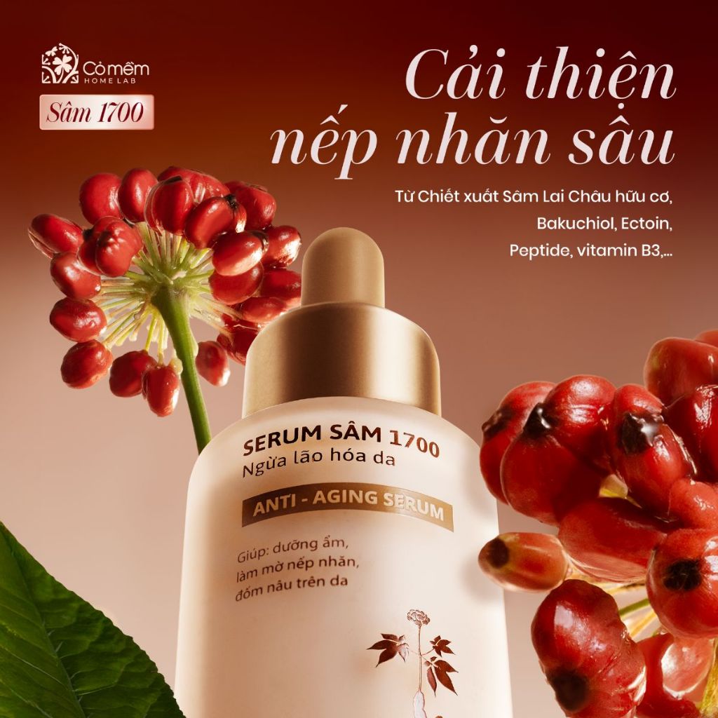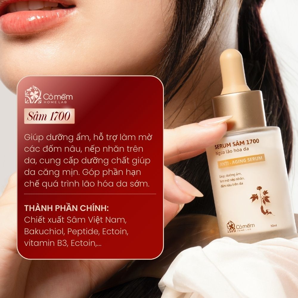 Serum Dưỡng ẩm da mặt Sâm 1700 Ngừa Lão Hoá da Giúp Mờ Nếp Nhăn Và Đốm Nâu Cỏ Mềm 30ml