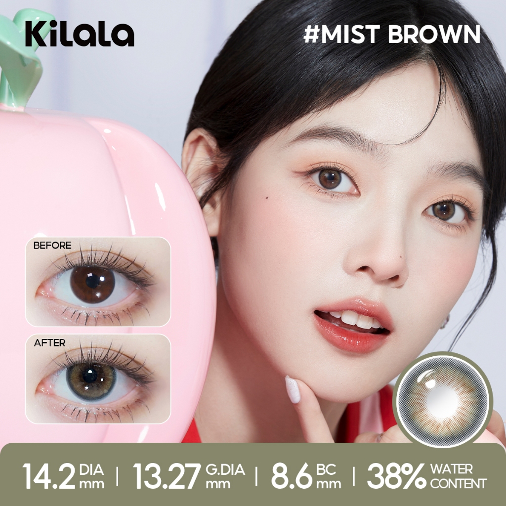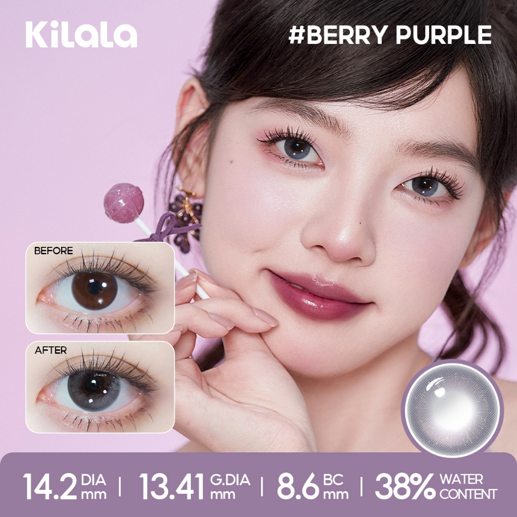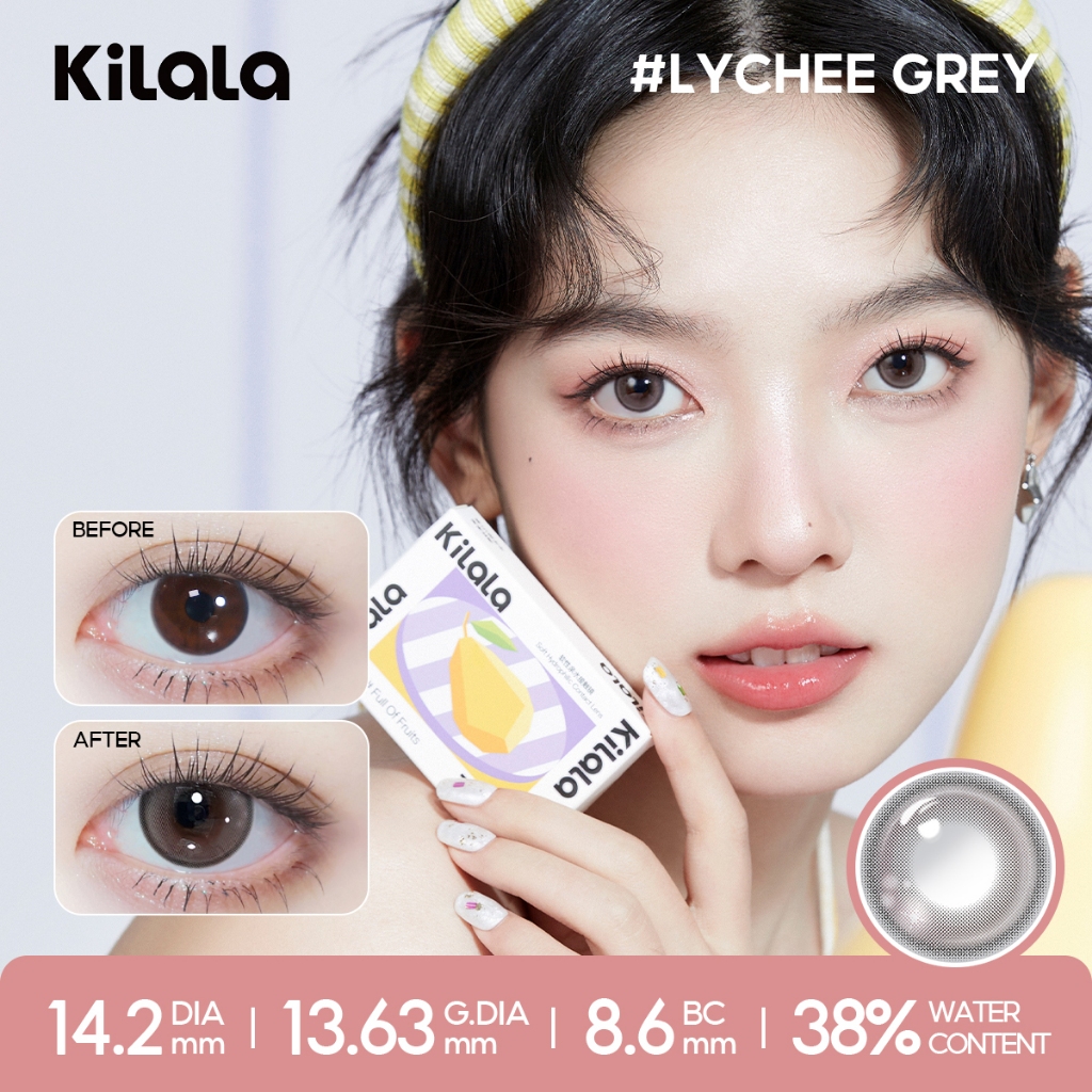 Kính áp tròng Kilala màu nâu Lychee Grey/Berry Purple/Pearly Grey DIA lens cận 6 tháng có độ (0-7) 1 cặp