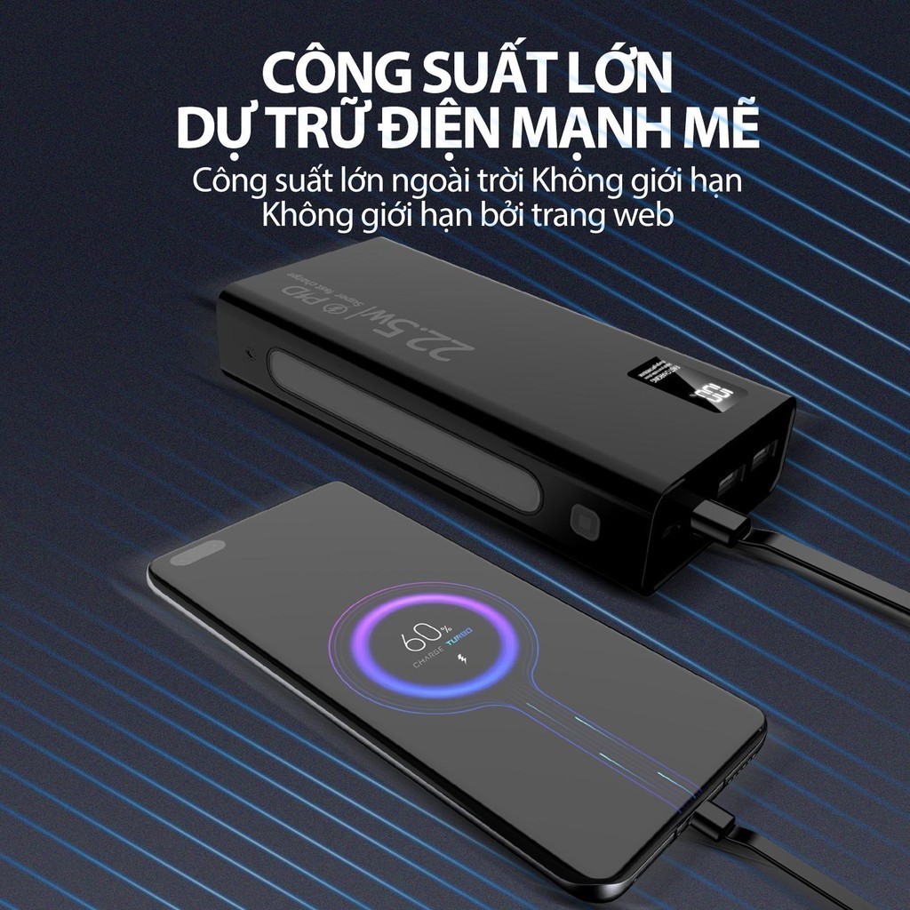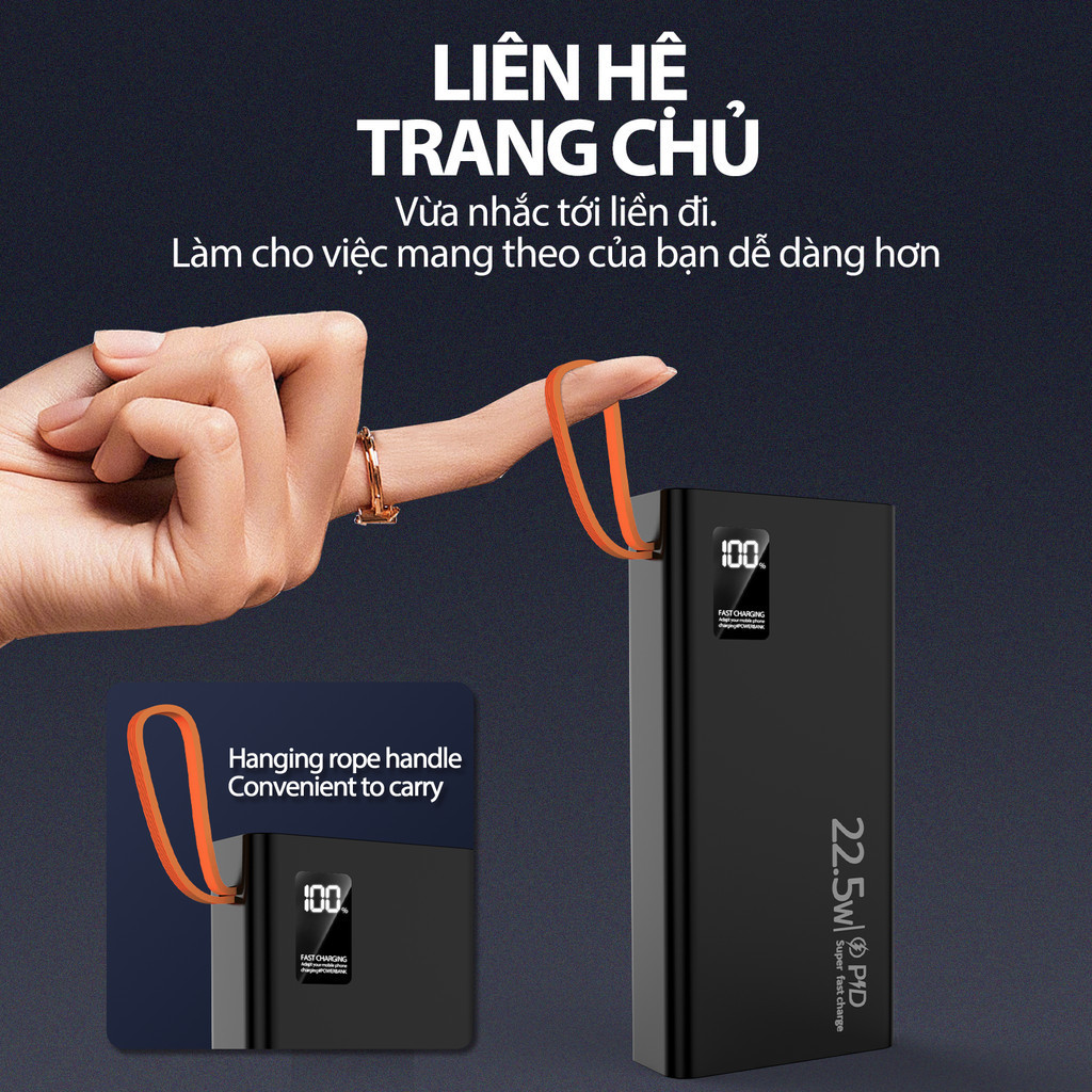 Bộ sạc dự phòng mini GOOJODOQ 22,5w Màn hình LED 20000mAh có chế độ đèn pin