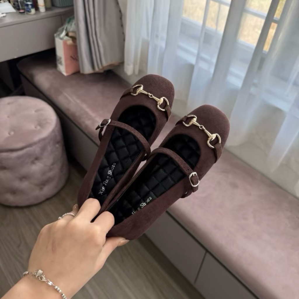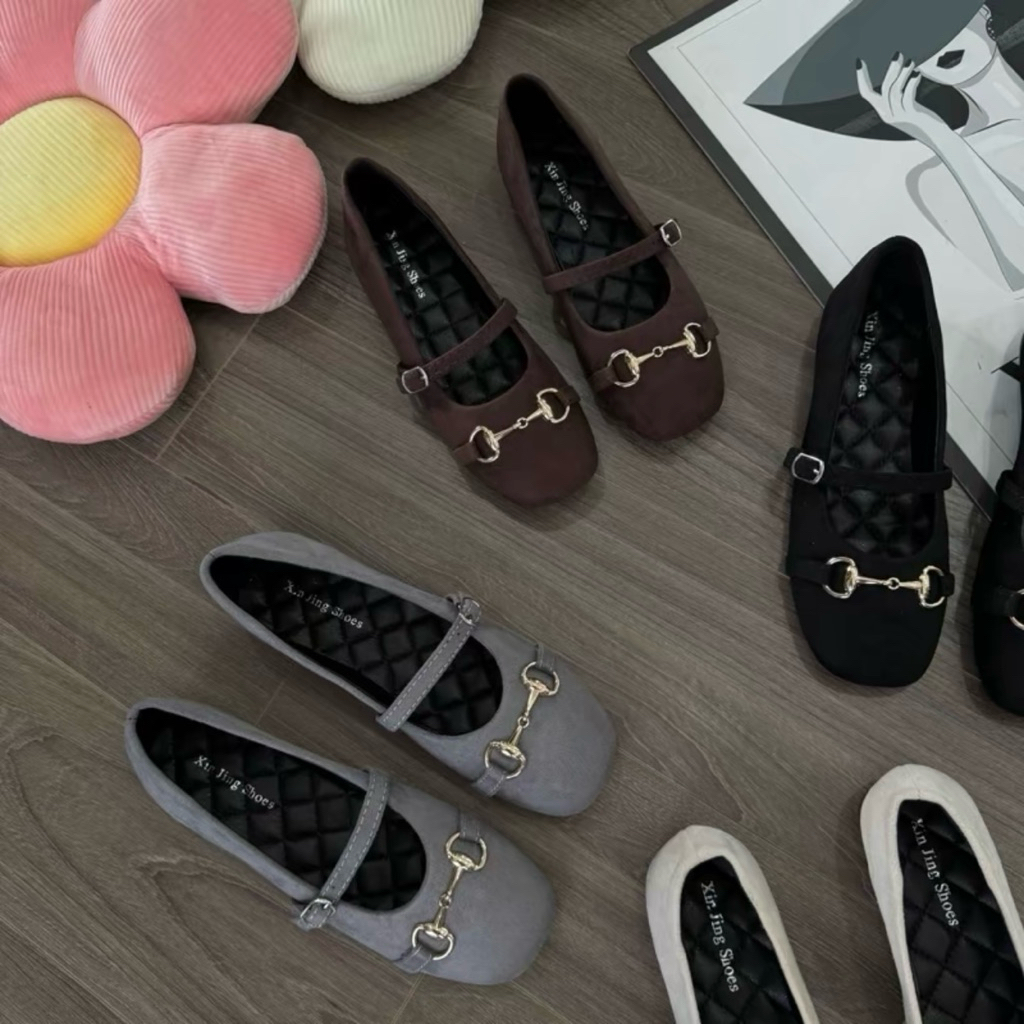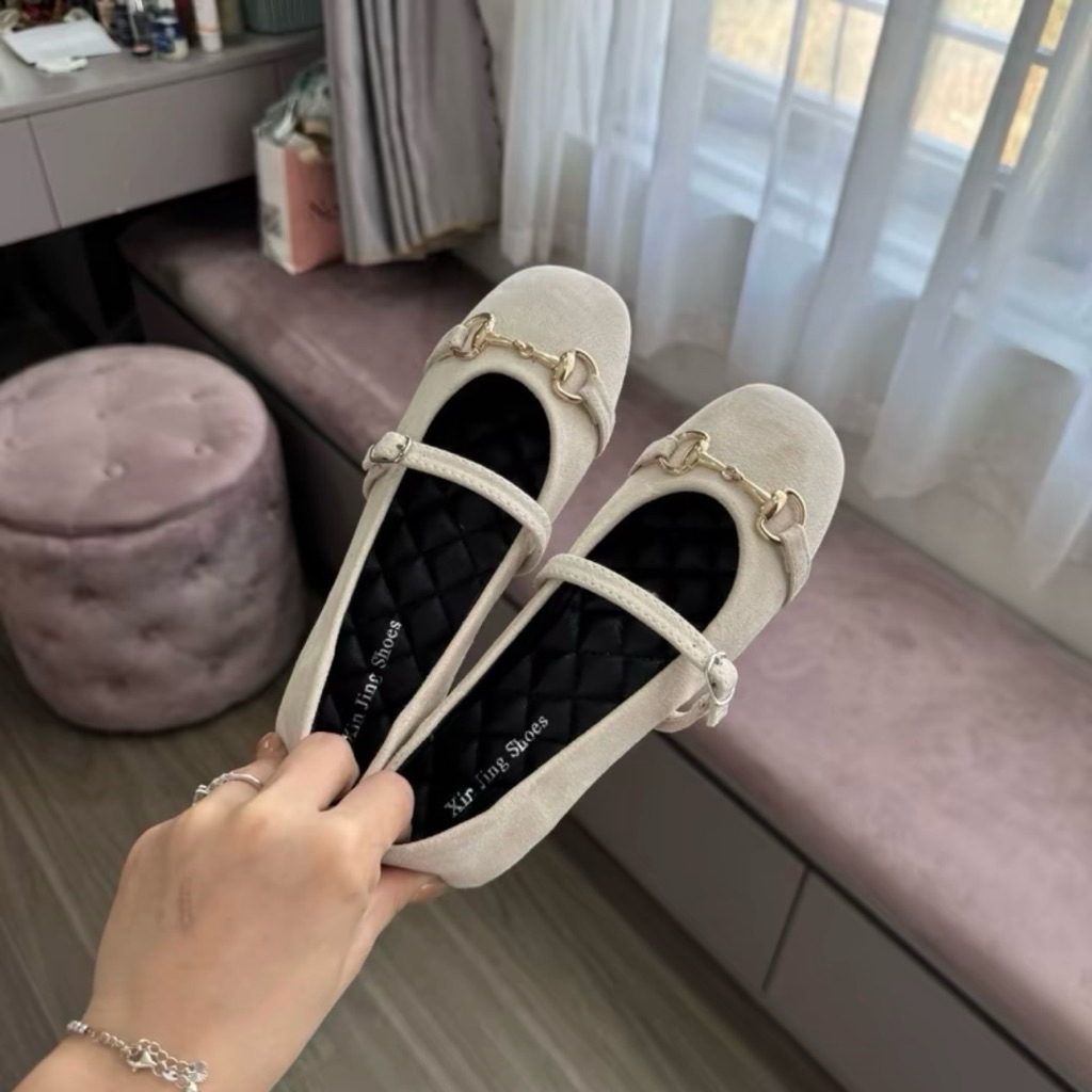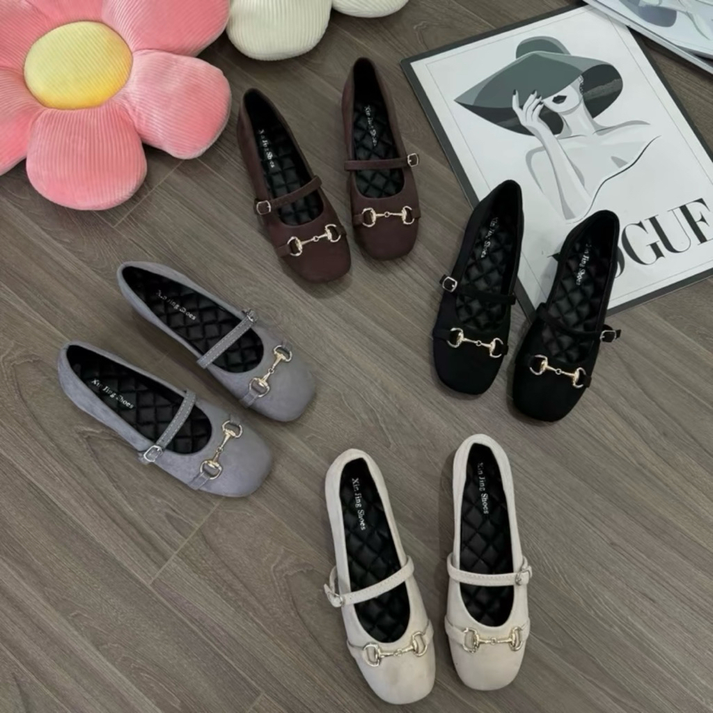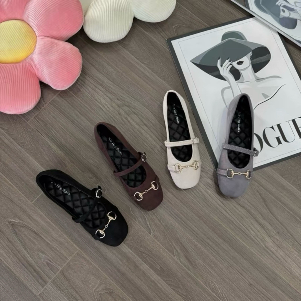 Giày búp bê khoá xích da nỉ mềm dễ đi - hottrend, chuẩn size (Vv1)