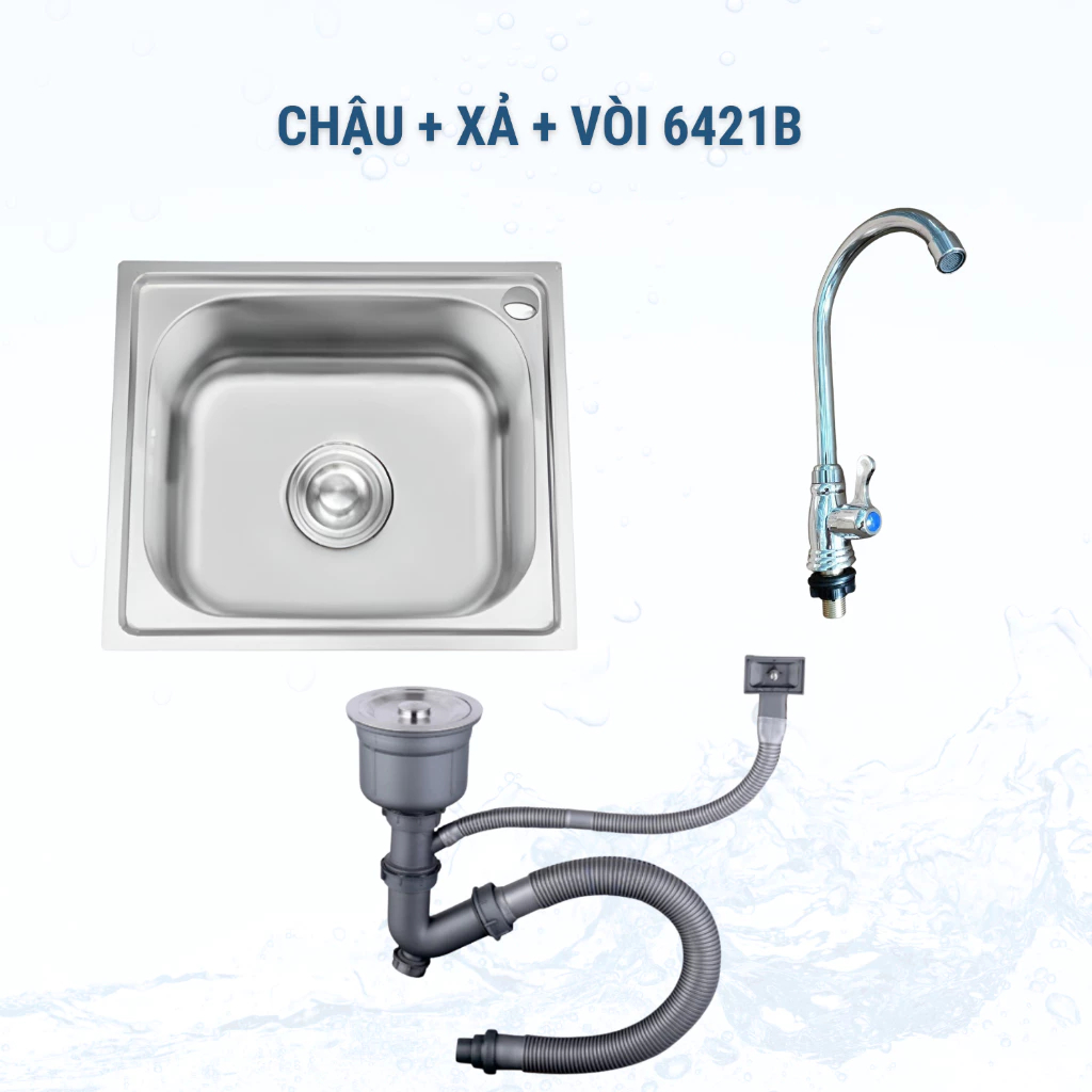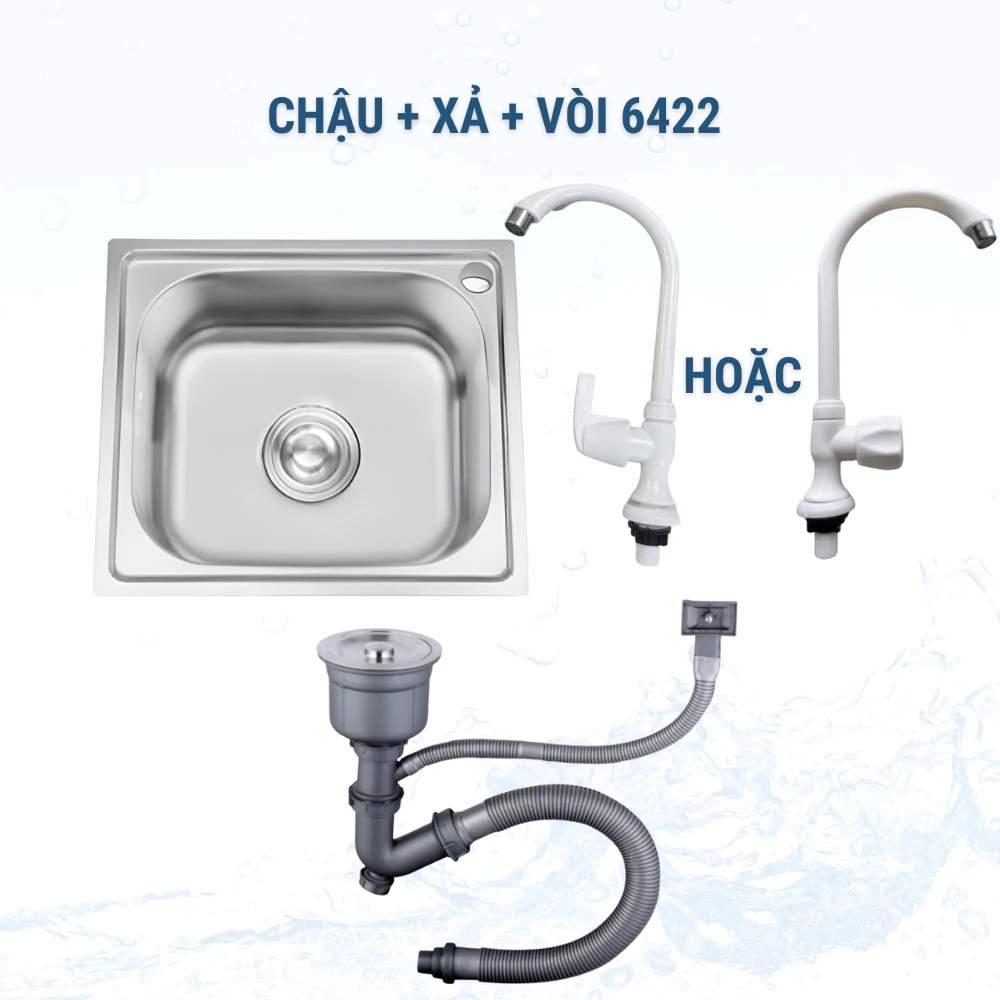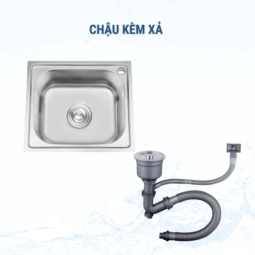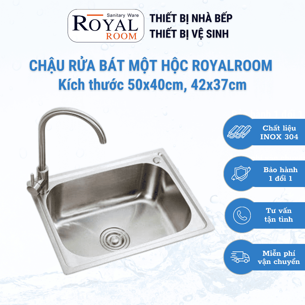 Chậu rửa bát một hố inox ROYALROOM nhỏ gọn tiện lợi đầy đủ phụ kiện đi kèm