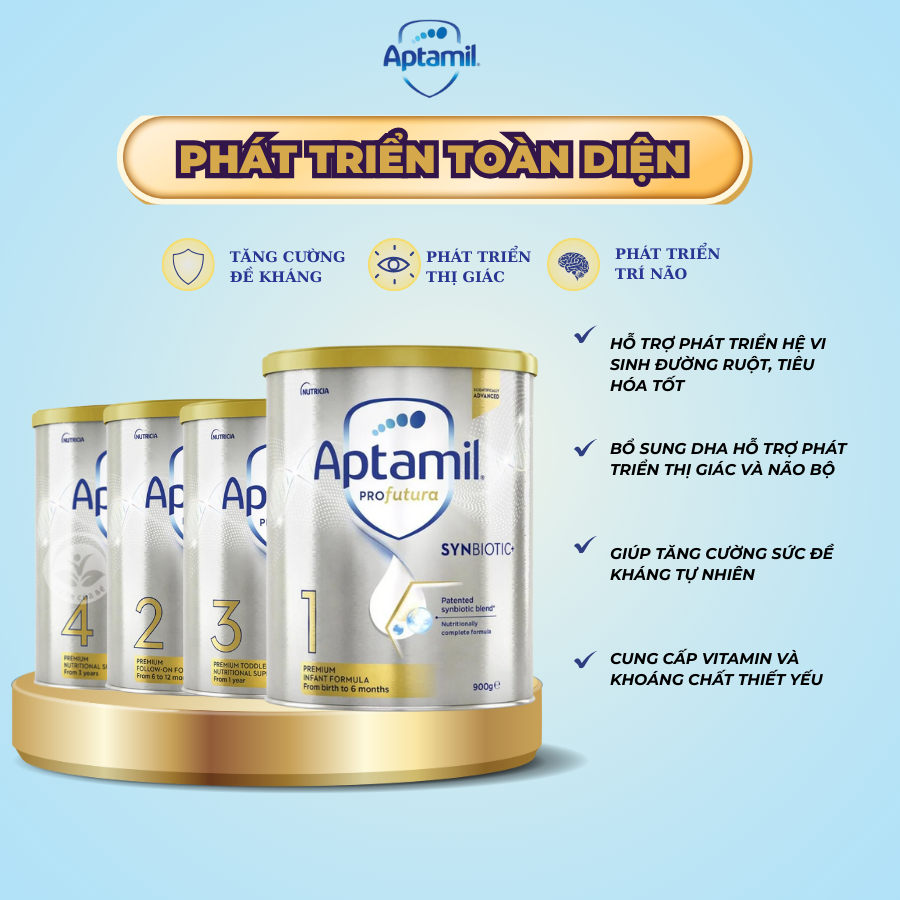 Sữa Bột Aptamil Bạc Profutura Úc Số 1 2 3 Phát Triển Toàn Diện Cho Bé Lon 800/900g - Bibo Mart