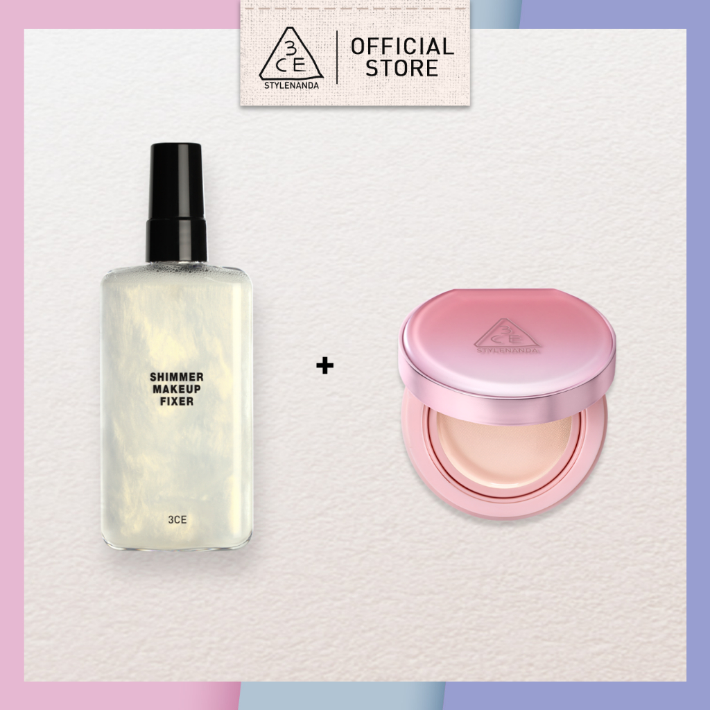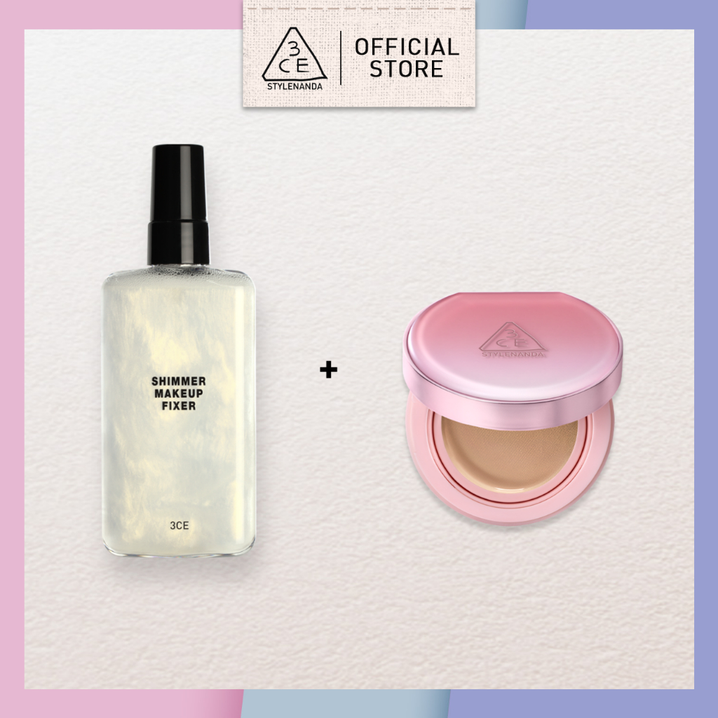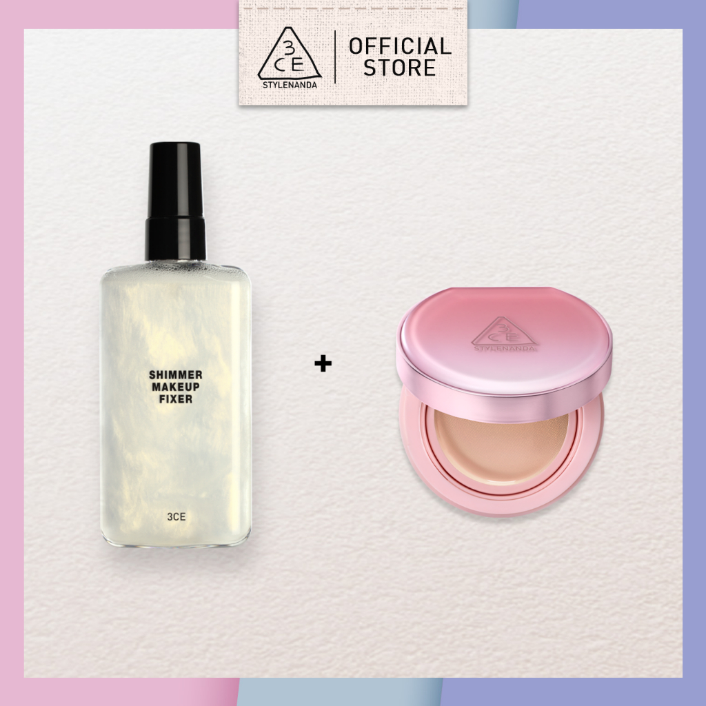 3CE Combo Phấn Nước Fitting Mesh Cover Cushion & Chai Xịt Khóa Nền Shimmer Makeup Fixer
