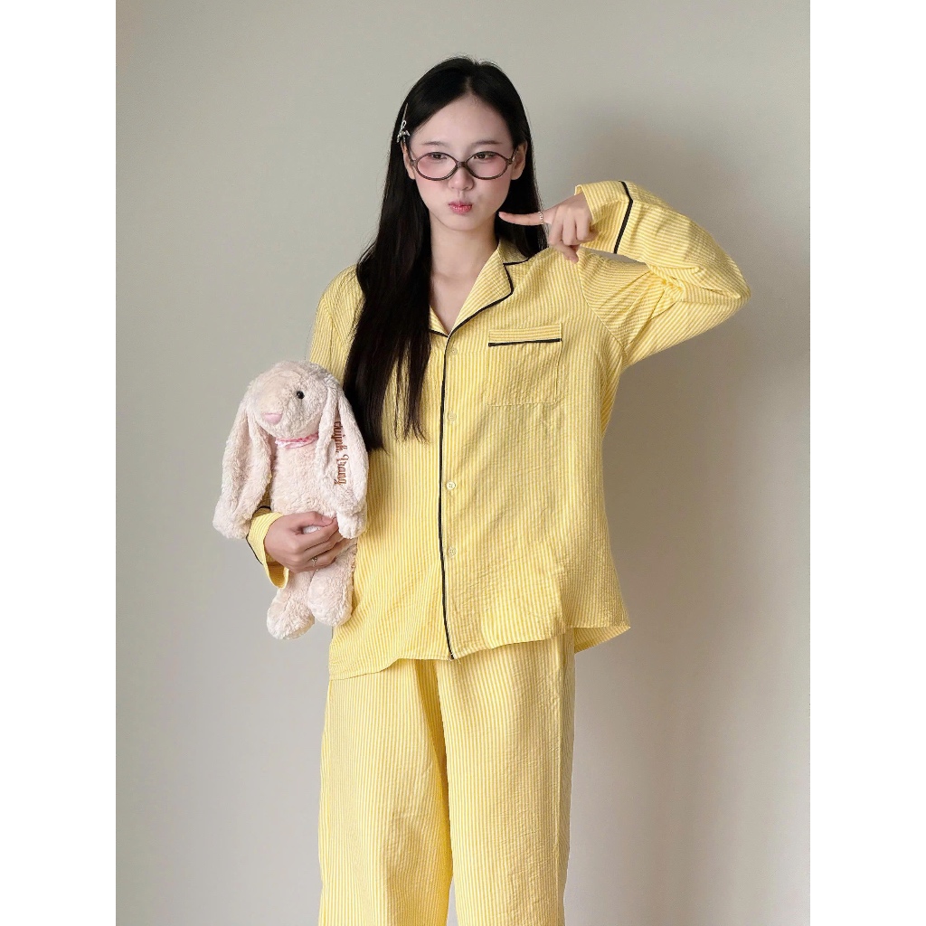 Maybee.Homedress Bộ Ngủ Kẻ Sọc Viền Đen – Chất Vải Mềm Mịn, Thanh Lịch, Thoải Mái