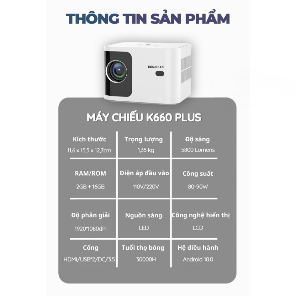 Máy Chiếu Mini K660Plus SWI Cao Cấp Độ Sáng Độ Nét Cao Chất Lượng FullHD Tự Động Lấy Nét Âm Thanh To