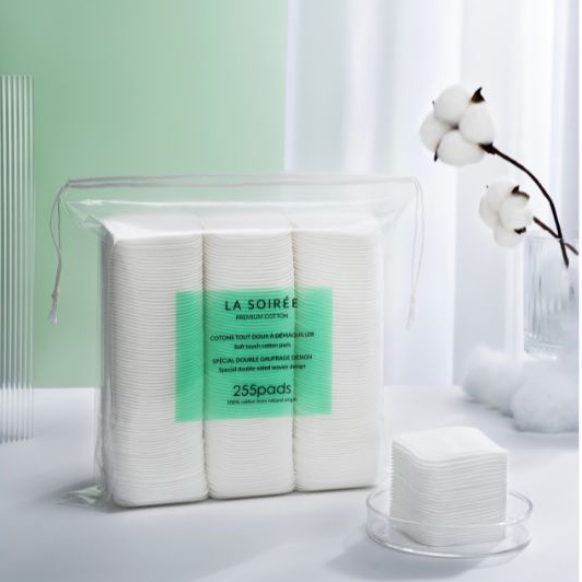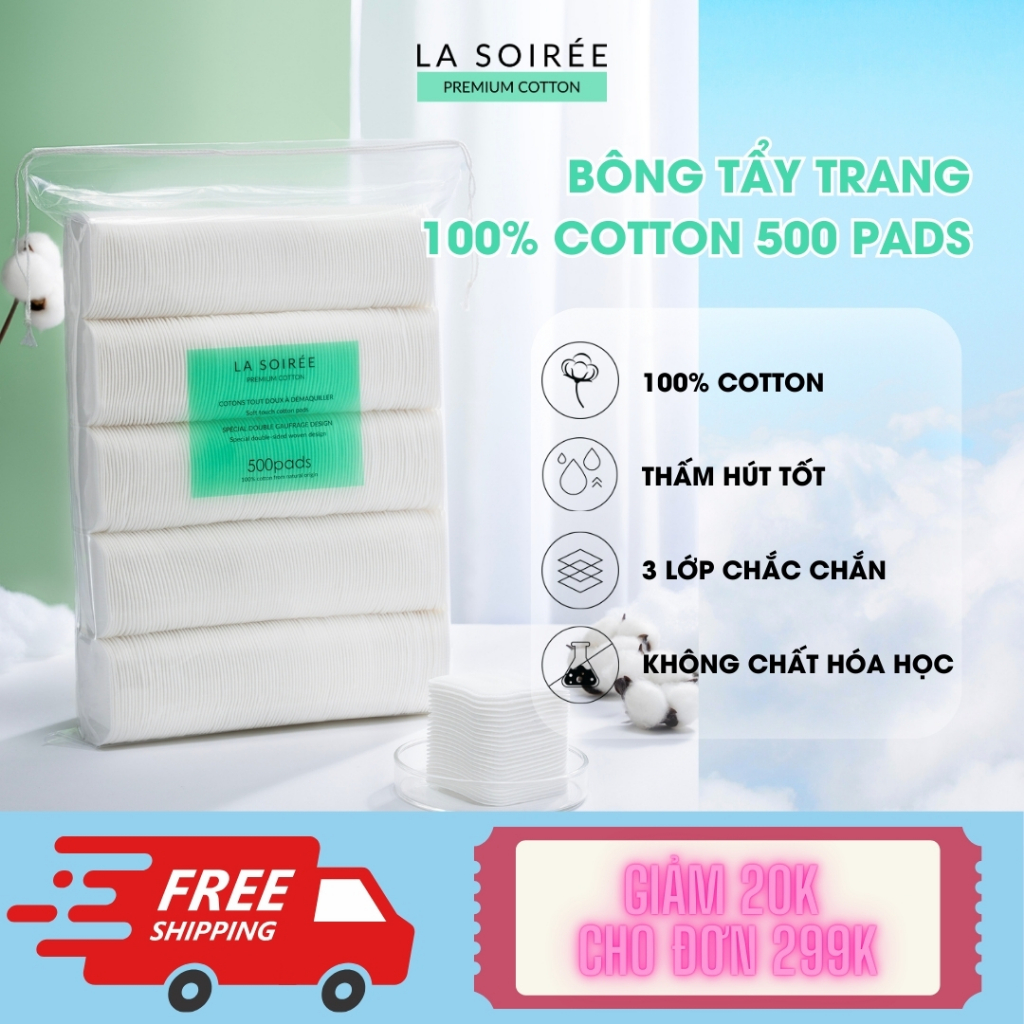 Bông tẩy trang 500 miếng vuông to La Soirée dập viền, 3 lớp cao cấp mềm mại, dai