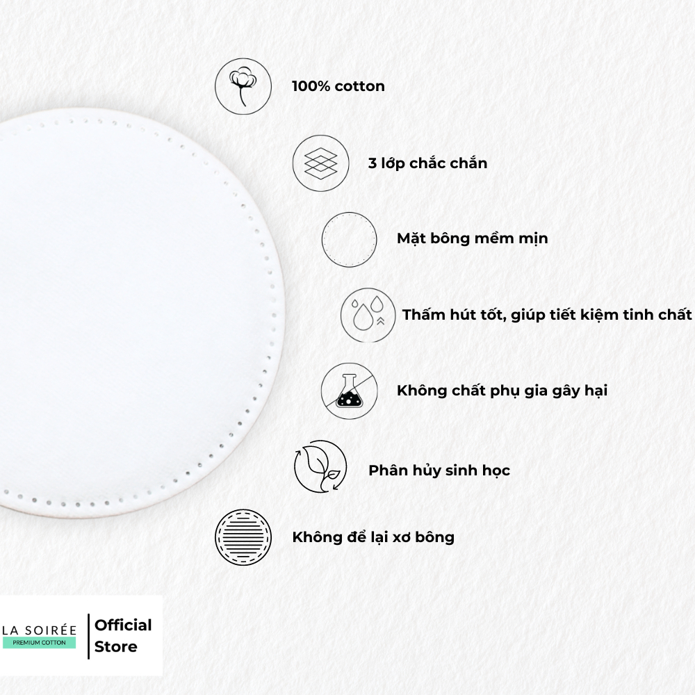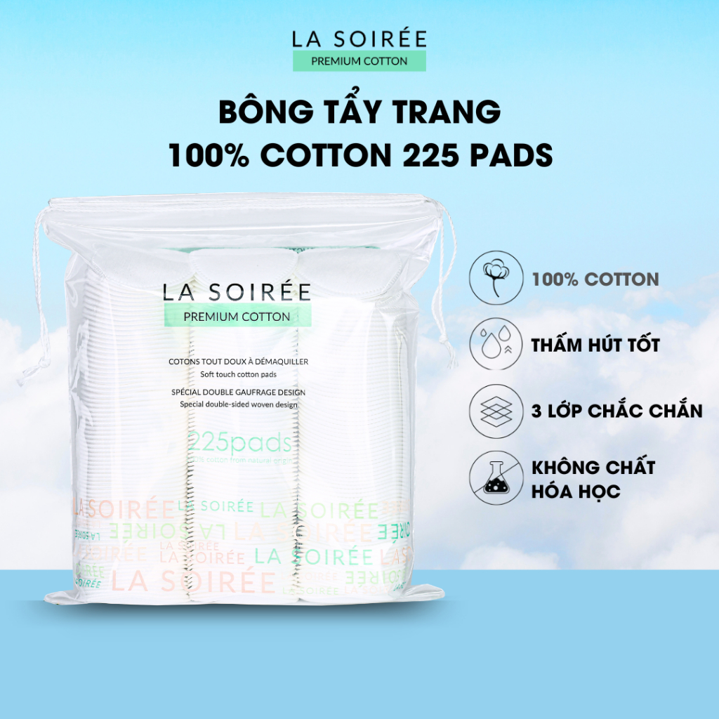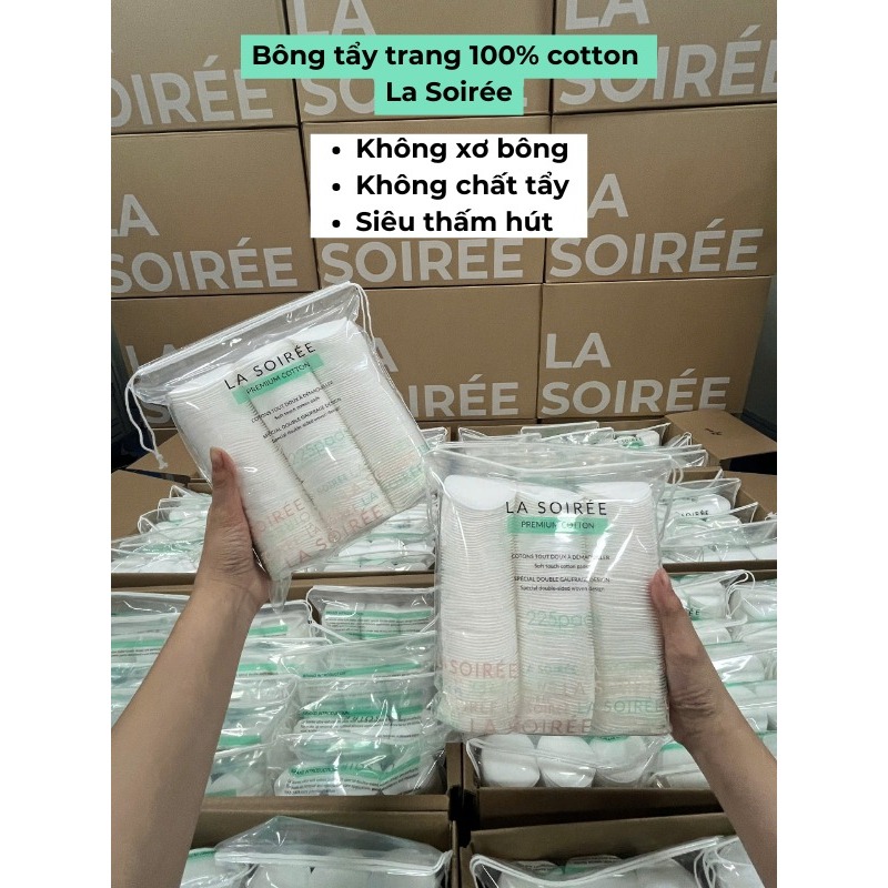 Bông tẩy trang 225 miếng tròn Mềm Mịn La Soirée 100% cotton - Hàng Việt Nam chất lượng cao
