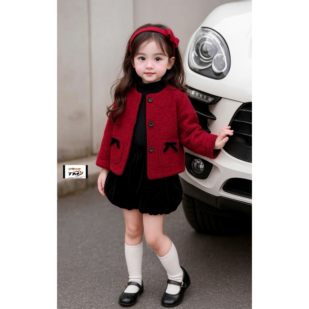 [A146 - XẢ KHO] Đồ đông cho bé gái, set đồ bé gái áo dạ lông cừu loại dày mix chân váy nhung mặc Tết 10-30kg