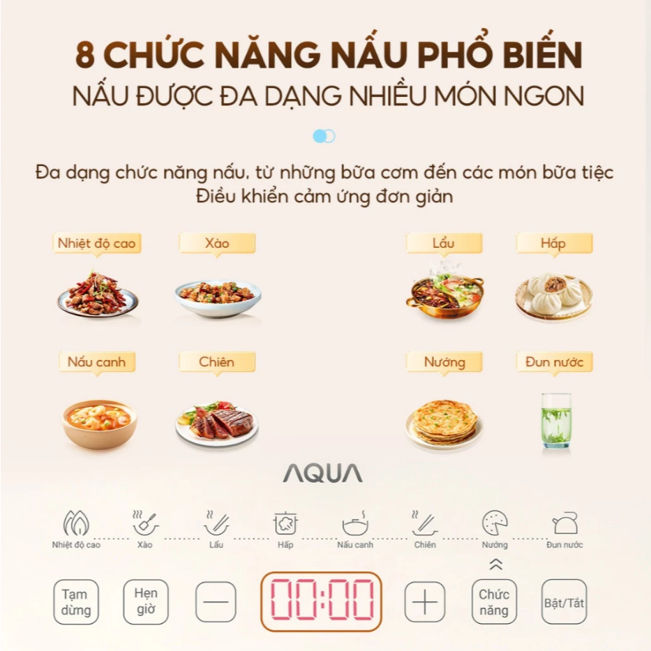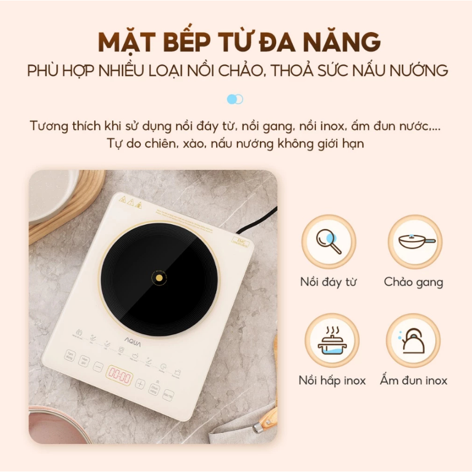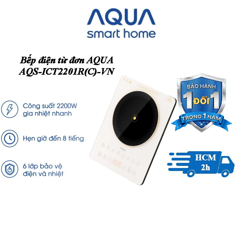 Bếp từ đơn Aqua ICT2201R(C)-VN Công suất 2200W - 22 mức điều chỉnh nhiệt độ - 8 chế độ nấu
