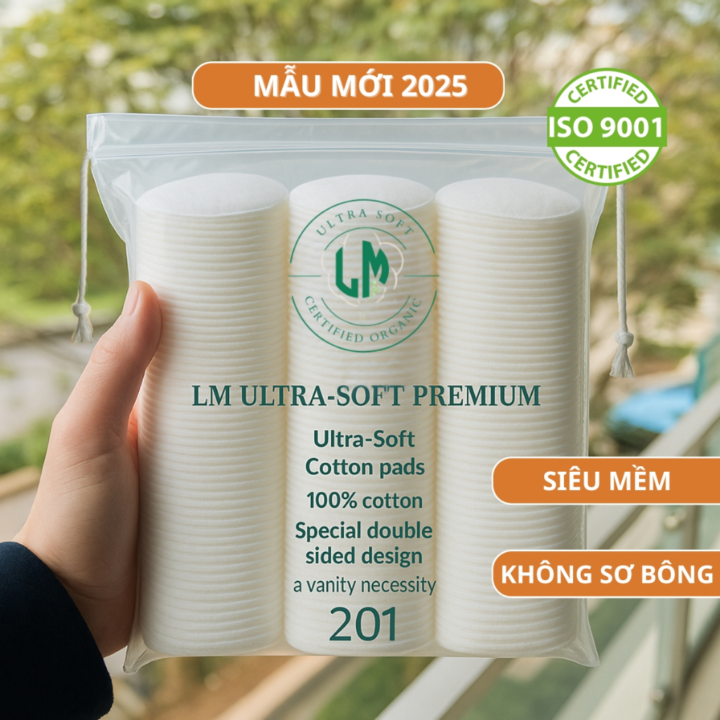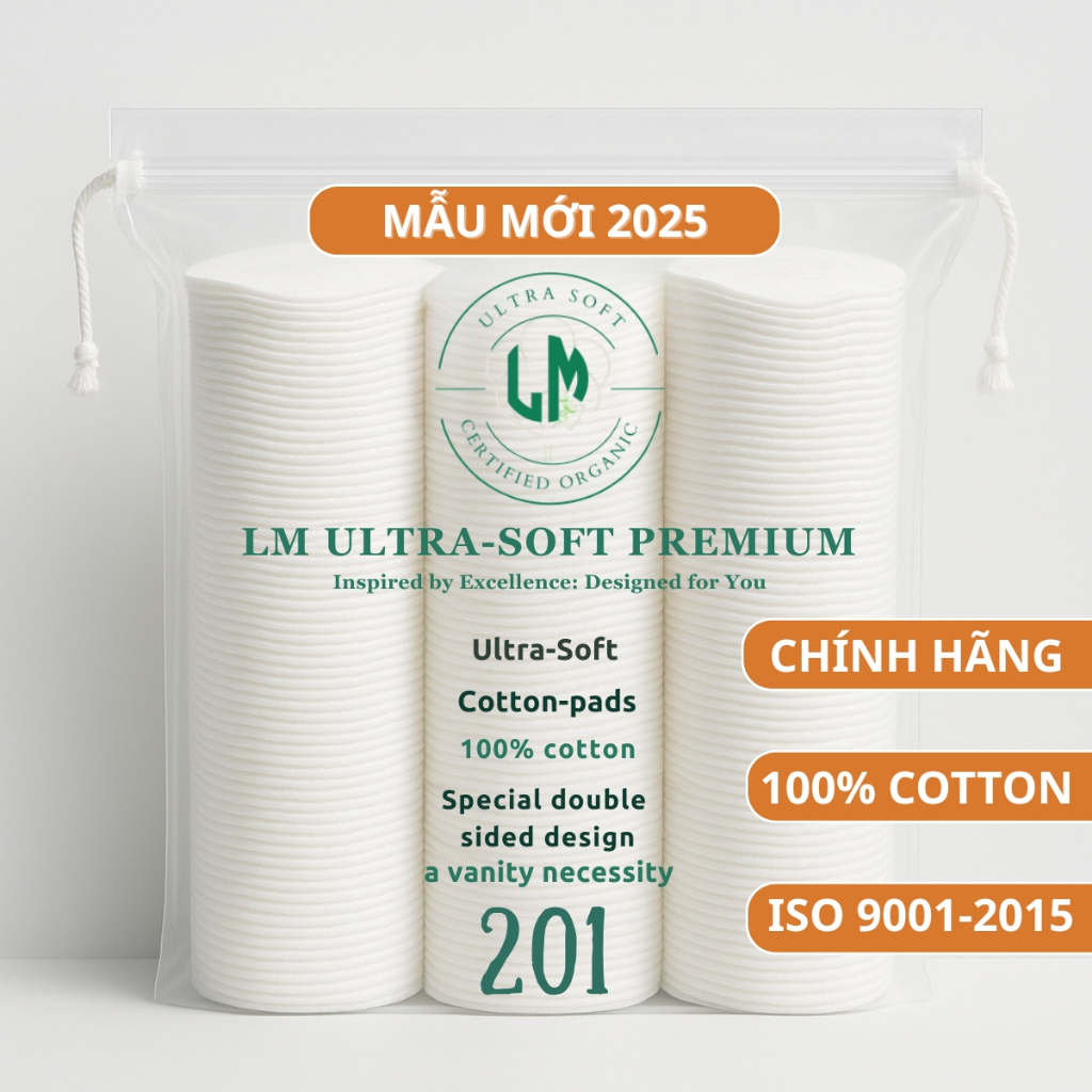 (Rẻ Vô Địch) Bông Tẩy Trang LM 201 Miếng 100% cotton mềm mịn, Bông tẩy trang chính hãng