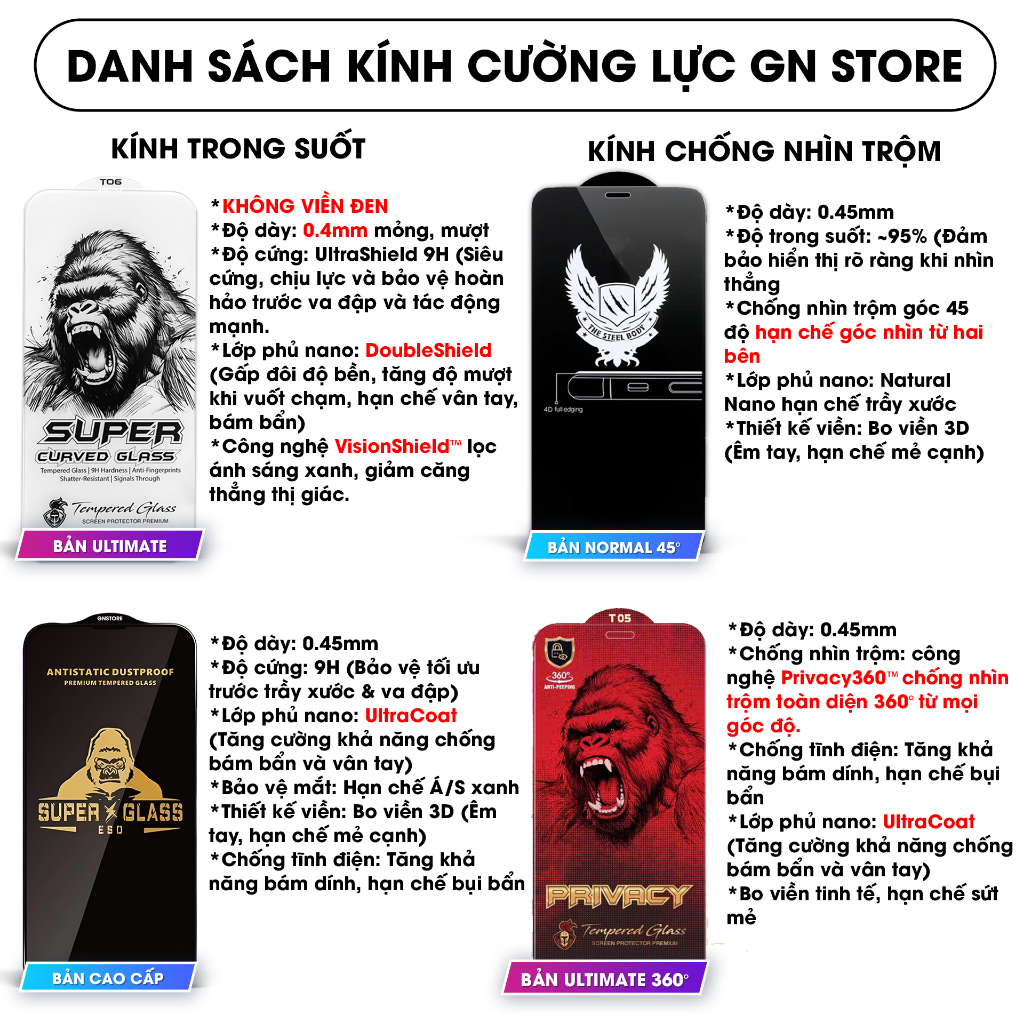 Kính cường lực chống nhìn trộm cho iPhone 17 Promax 16/15/14/13/12/11 Promax/Plus/Mini/Xs/Xr full màn - GN STORE [𝐂𝐍𝐓]