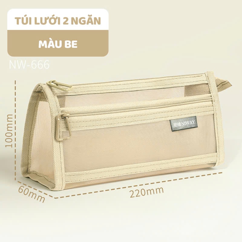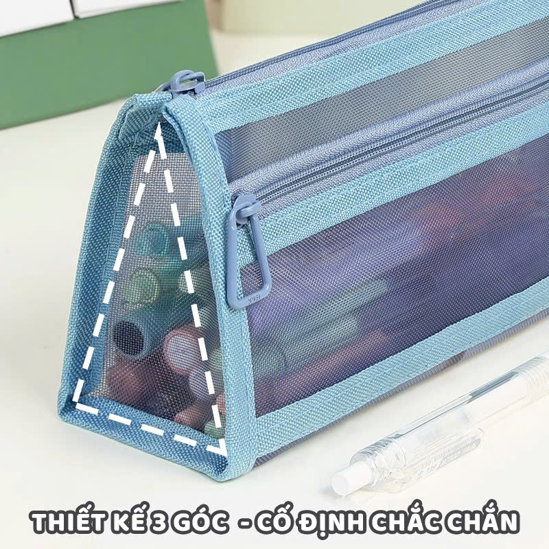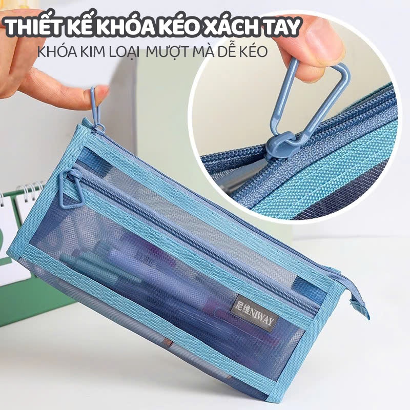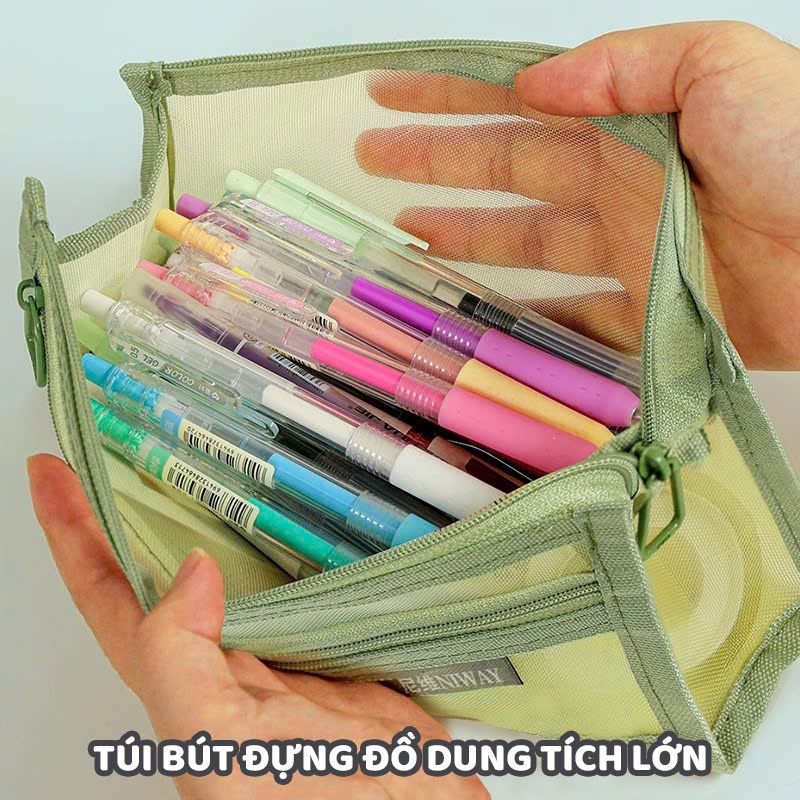 Túi Lưới Đựng Bút 2 Ngăn Giá Rẻ, Túi Đựng Bút Dạng Lưới Trong Suốt Đơn Giản