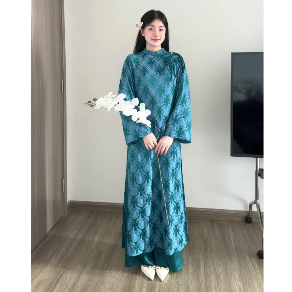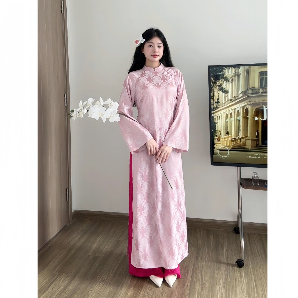 Áo dài cách tân dáng suông đính nơ ngọc, chất gấm lụa thọ dơi cao cấp tông màu pasel trẻ trung thích hợp đi lễ tết