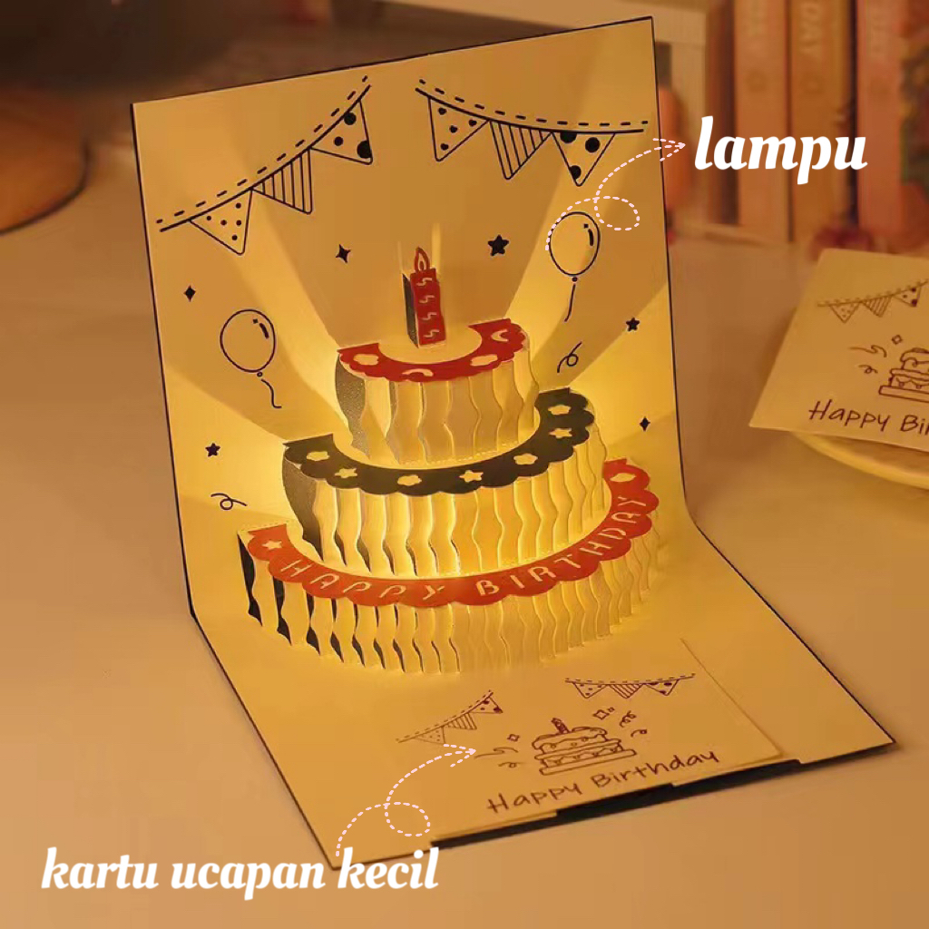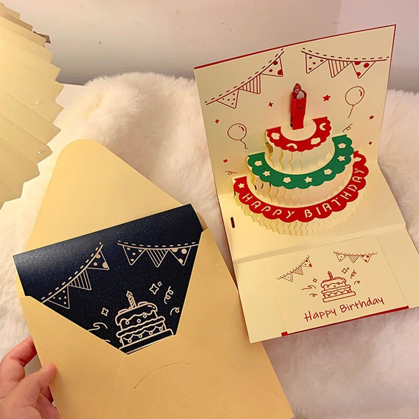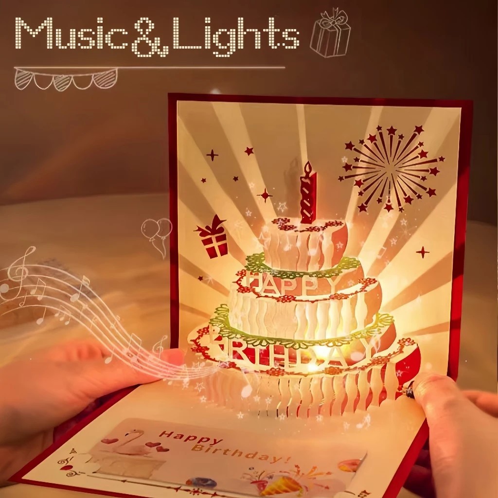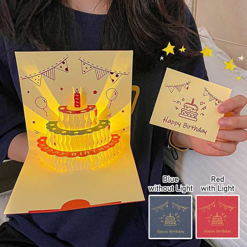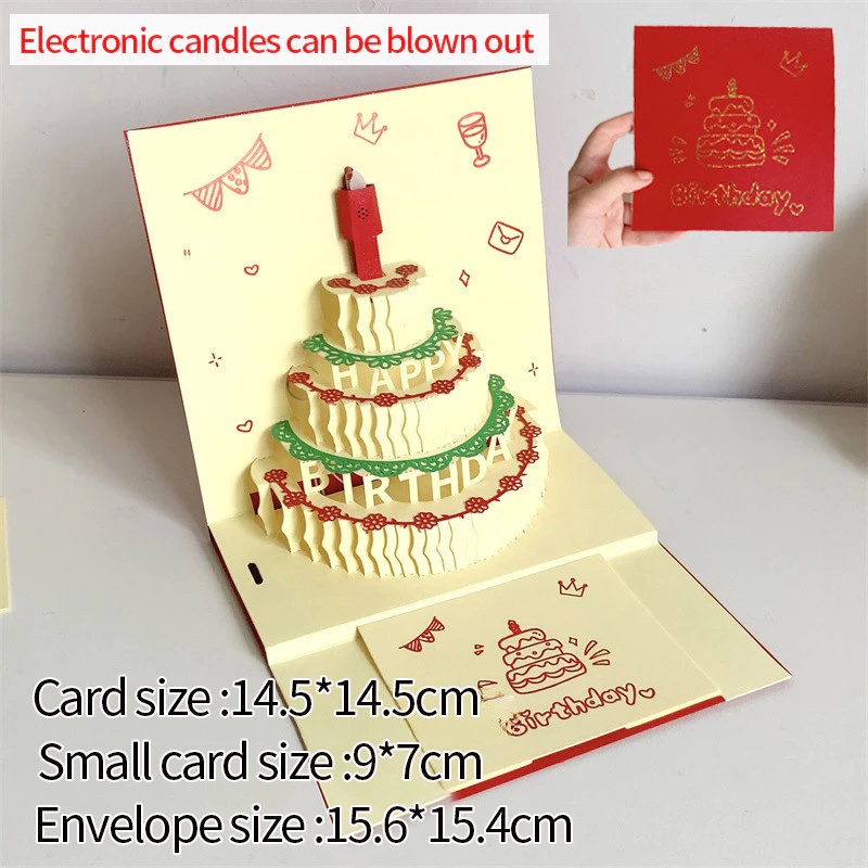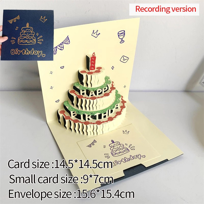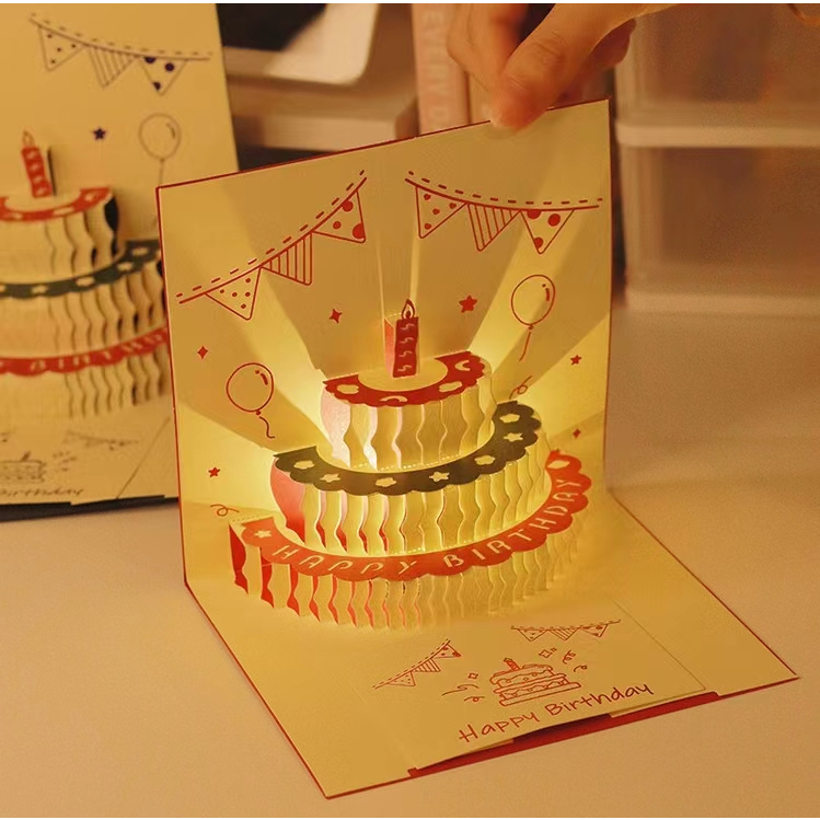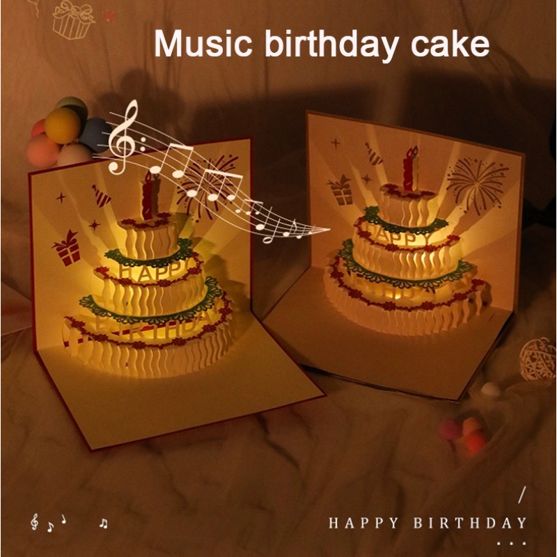 Thiệp sinh nhật âm nhạc Bật lên Bánh 3D Thiệp chúc mừng ánh sáng âm nhạc Thẻ tin nhắn quà tặng tiệc sinh nhật sáng tạo