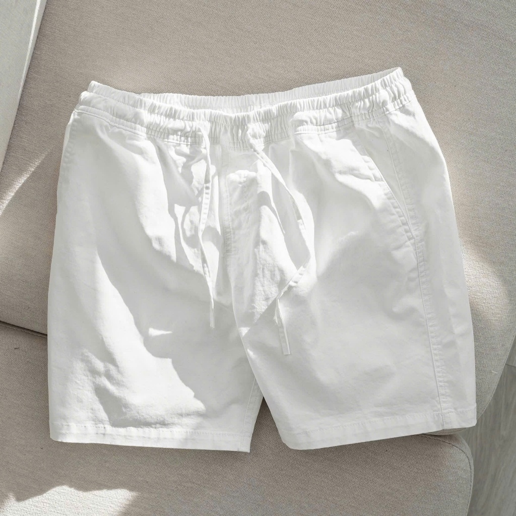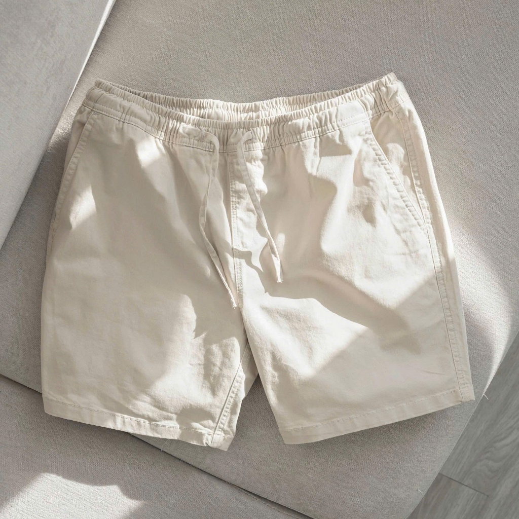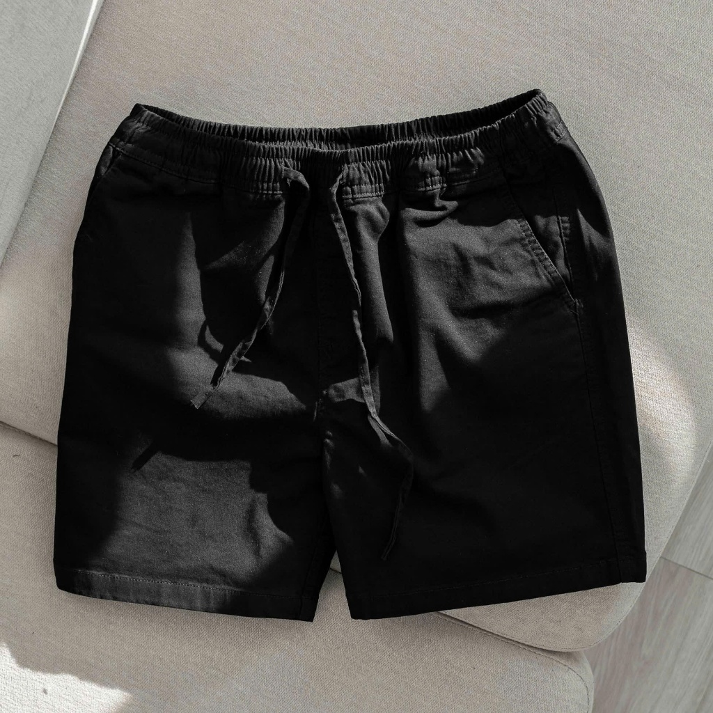 quần shorts kaki nam basic cotton cạp chun dáng cộc trên gối