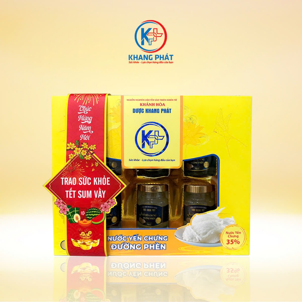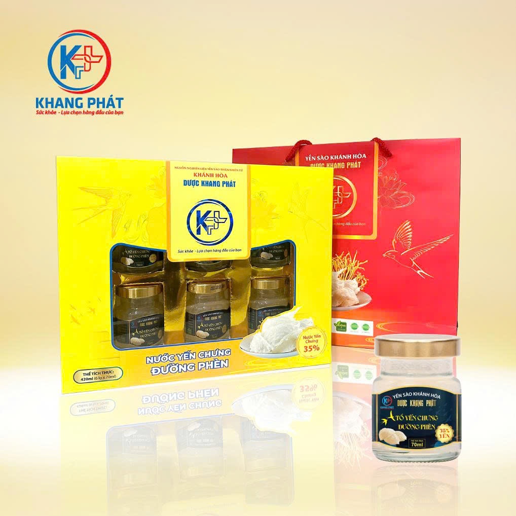 [Hộp Quà Tặng] TỔ YẾN CHƯNG ĐƯỜNG PHÈN TỰ NHIÊN Dược Khang Phát tốt cho sức khỏe (6 hũ x 70ml)- VÀNG