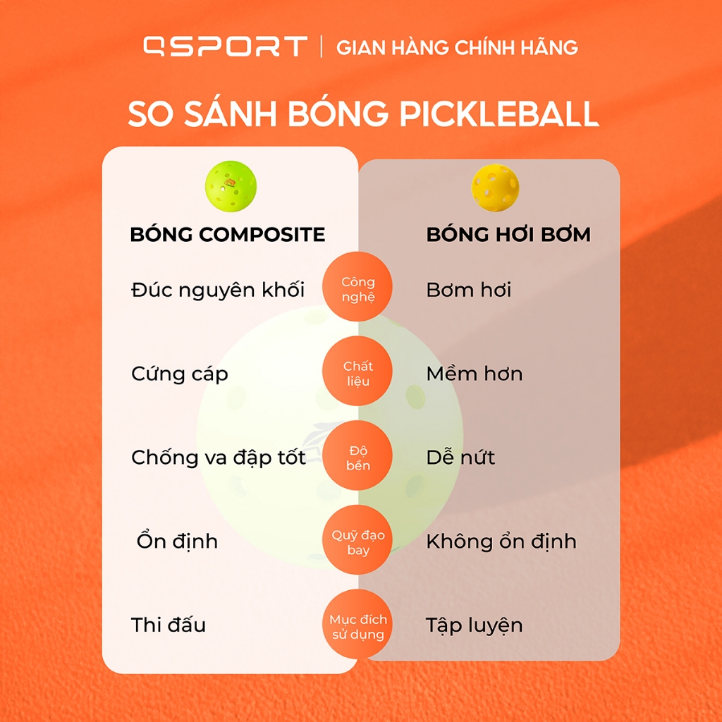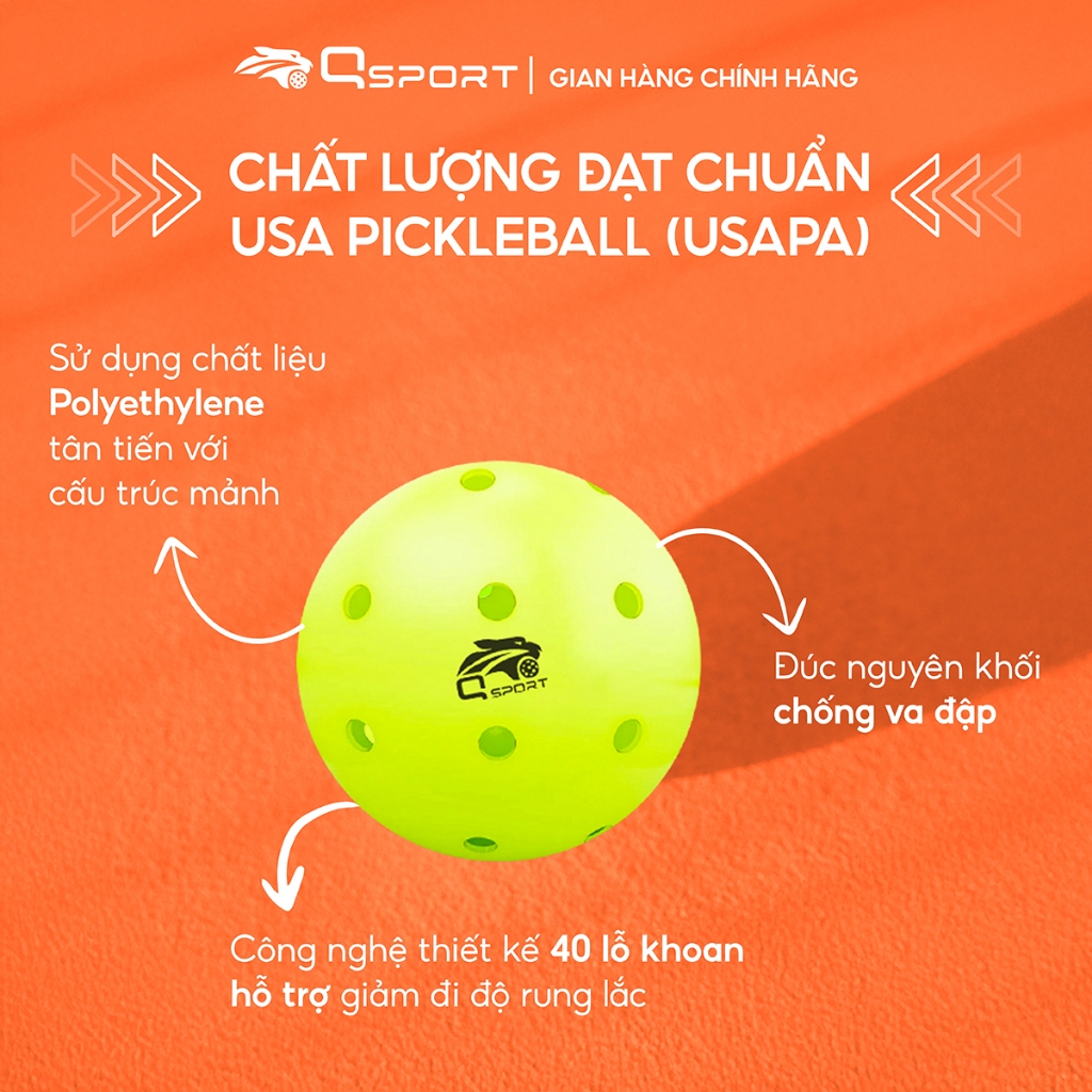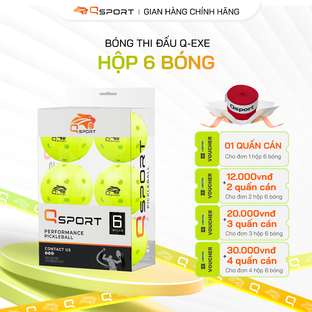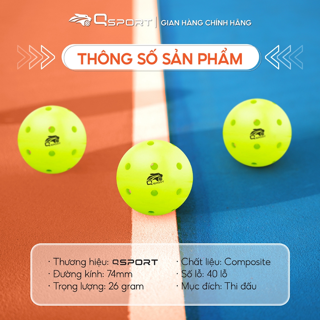 Hộp 6 Bóng thi đấu Pickleball Qsport Q-Exe 40 lỗ với đường kính 74mm - Chính hãng