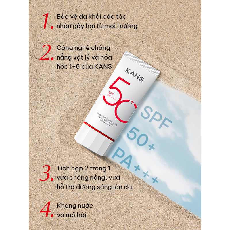 Kem Chống Nắng Nâng Tông KANS Tone Up Whitening Brighten Sunscreen Cream SPF 50+ PA +++ 50G