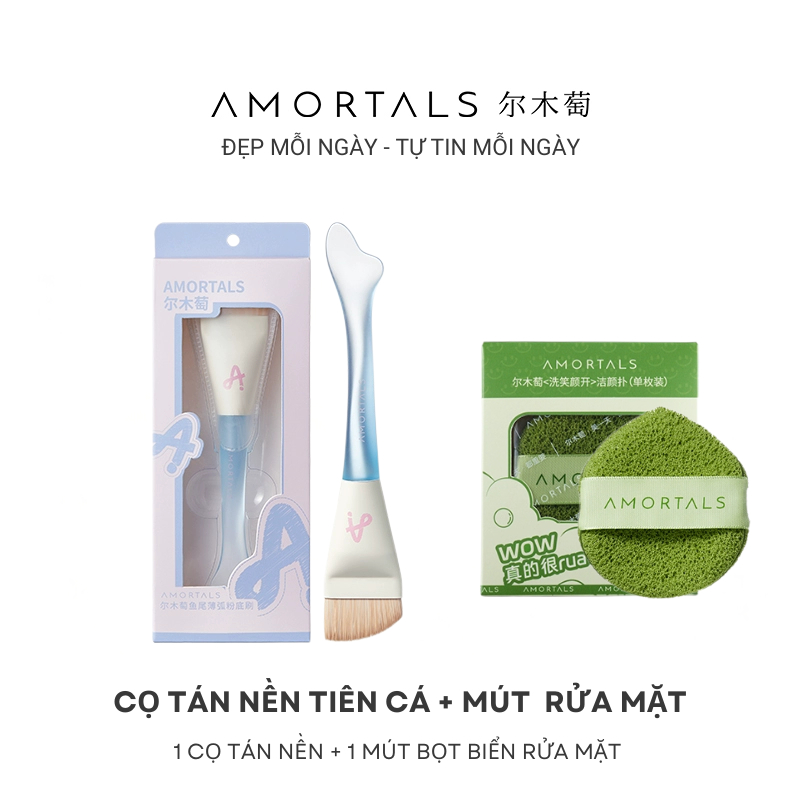 Cọ Tán Nền AMORTALS Cọ Trang Điểm Cá Nhân Tiên Cá Đầu Vát Tán Nền Mịn, Không Vết, Che Phủ Tự Nhiên