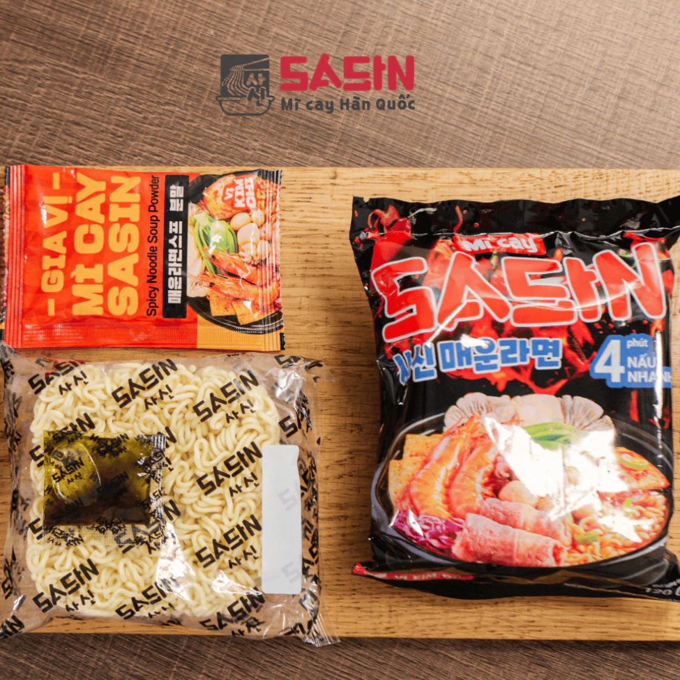 Combo 10 gói mì cay Sasin vị KIM CHI 120g + 10 gói xốt ớt độ 10g