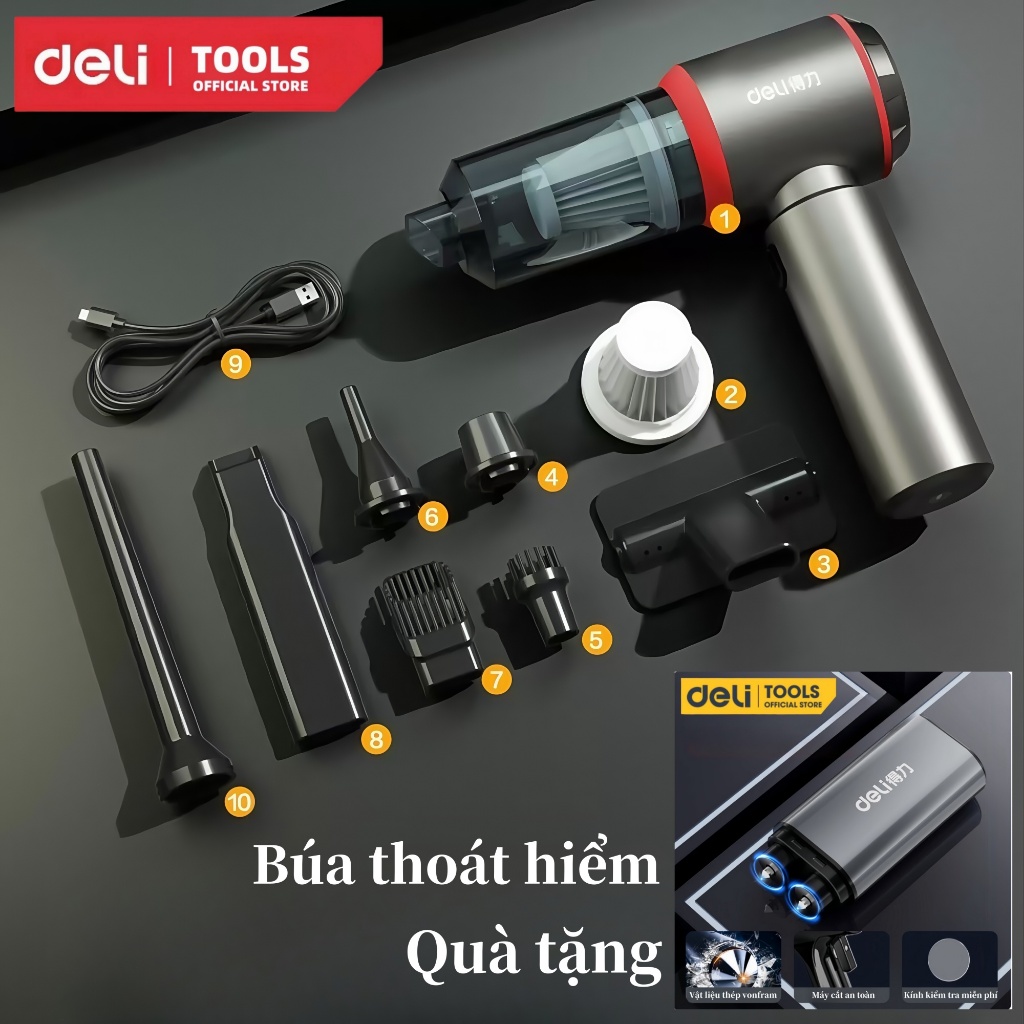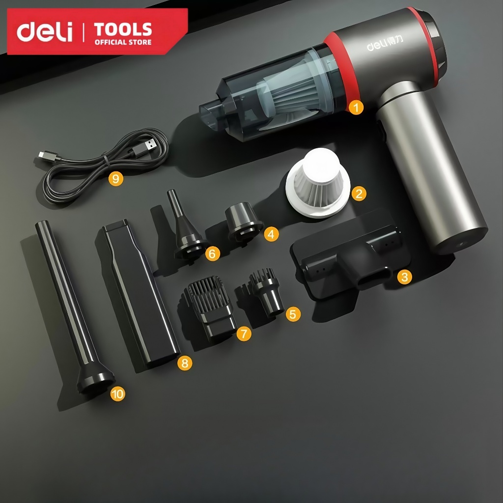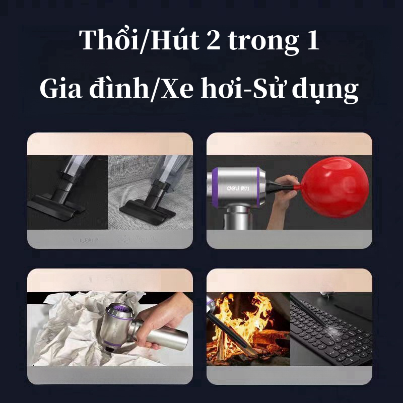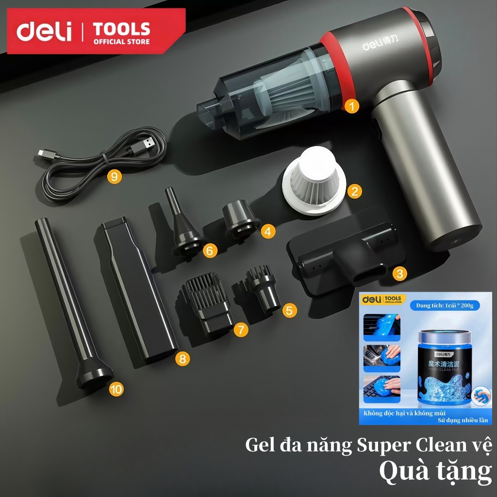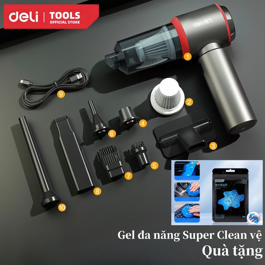 Máy Hút Bụi Mini Cầm Tay Deli Không Dây, lực hút bụi mạnh sạch bàn phím ô tô