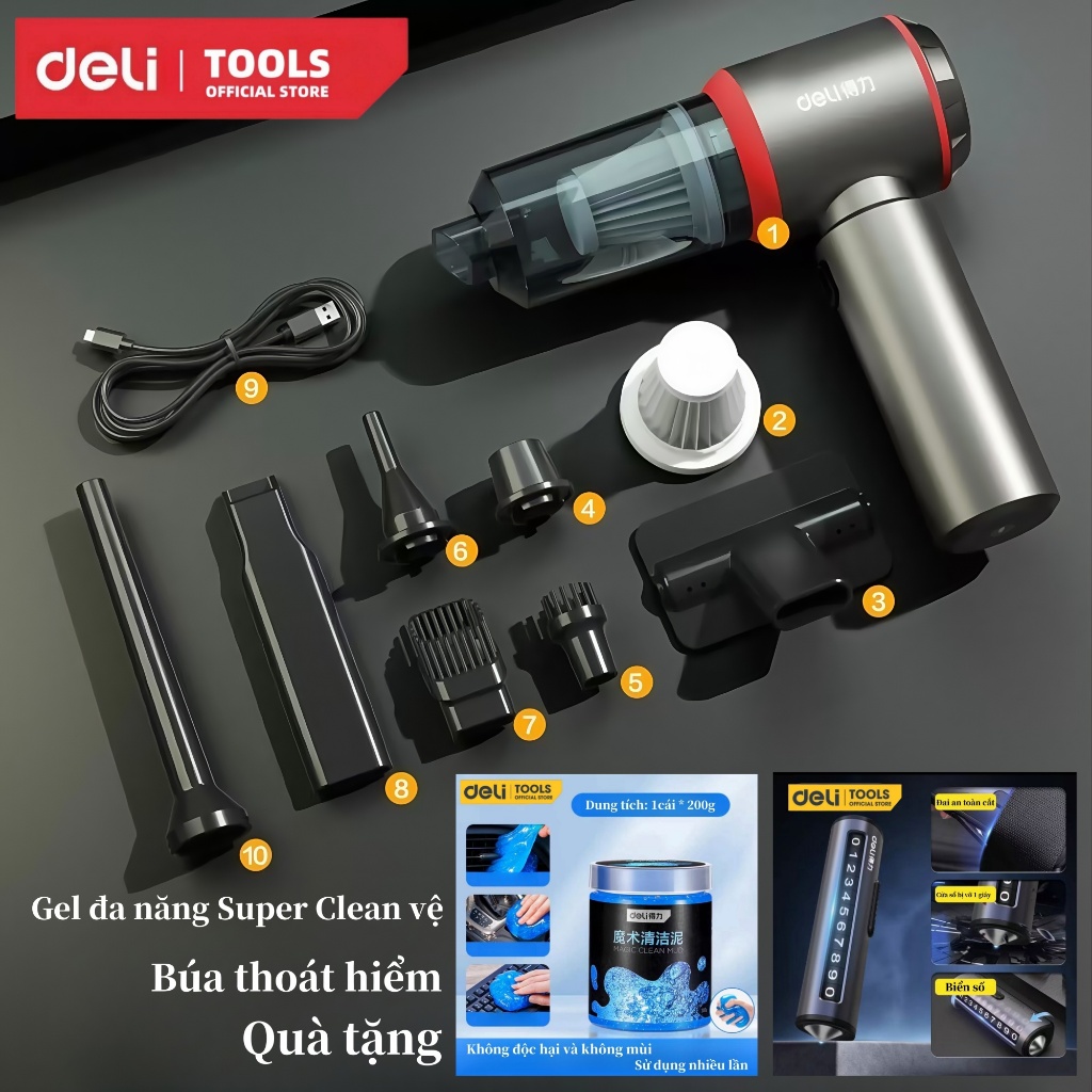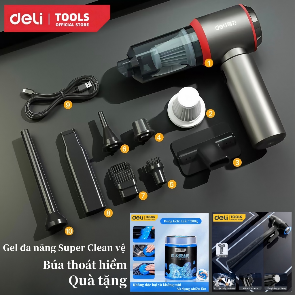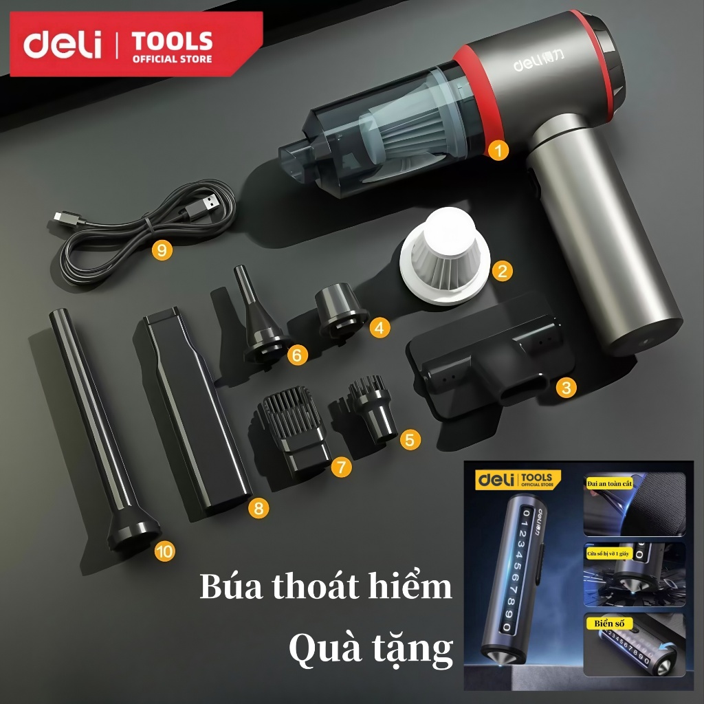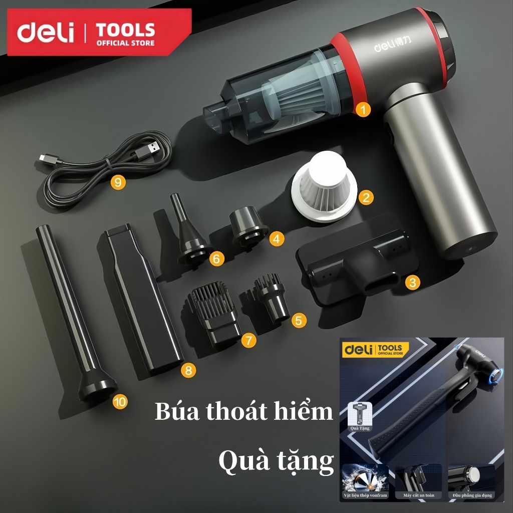 Máy Hút Bụi Mini Cầm Tay Deli Không Dây, lực hút bụi mạnh sạch bàn phím ô tô