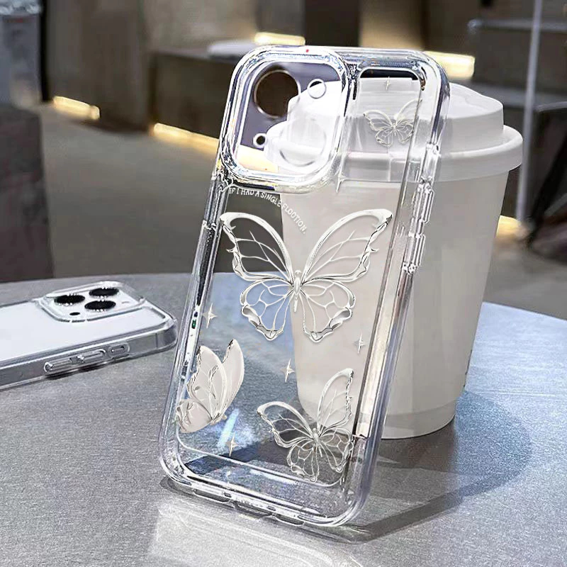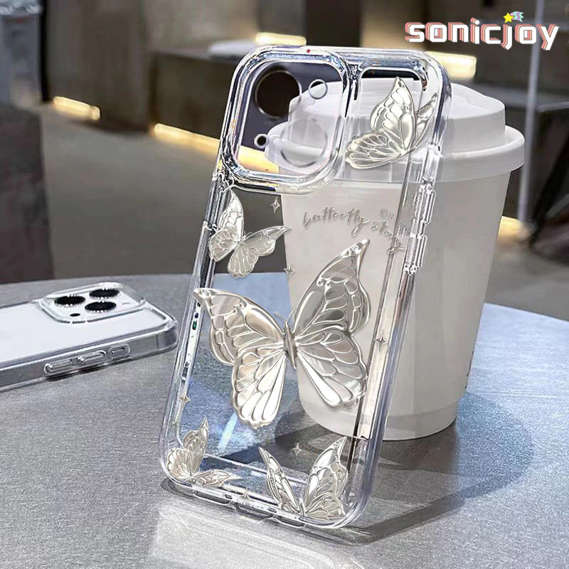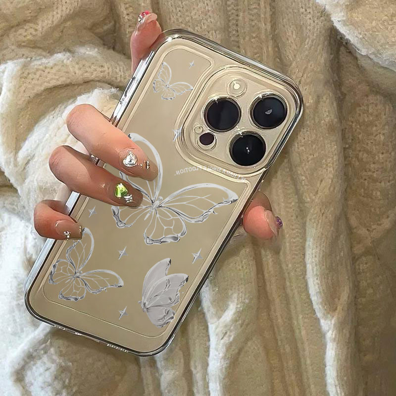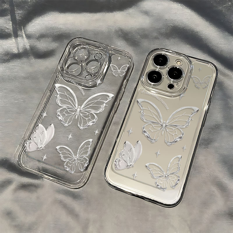 ốp lưng iphone Bướm Rỗng Bạc Thích Hợp Cho IPhone 15 Pro Max 11 12 13 14 Pro Max X XR XS Max 7Plus 8Plus Niche Cao Cấp-SN
