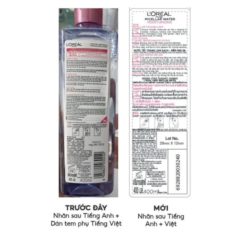 Nước tẩy trang và làm sạch sâu 3-in-1 L'Oreal Paris Micellar Water 400ml