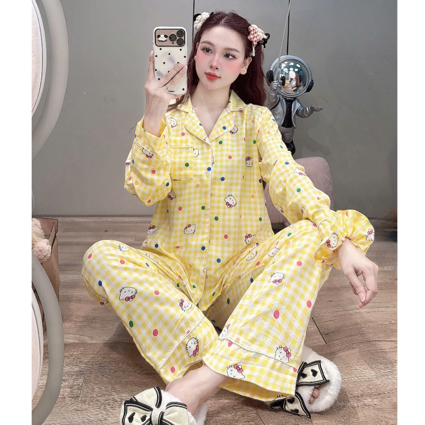 [DEAL MỞ BÁN] Bộ Đồ Ngủ Nữ JUSOKA Pijama Hình Hello Kitty Chất Liệu Đũi Mây Siêu Mềm Mịn Thoải Mái Cho Phụ Nữ DU19
