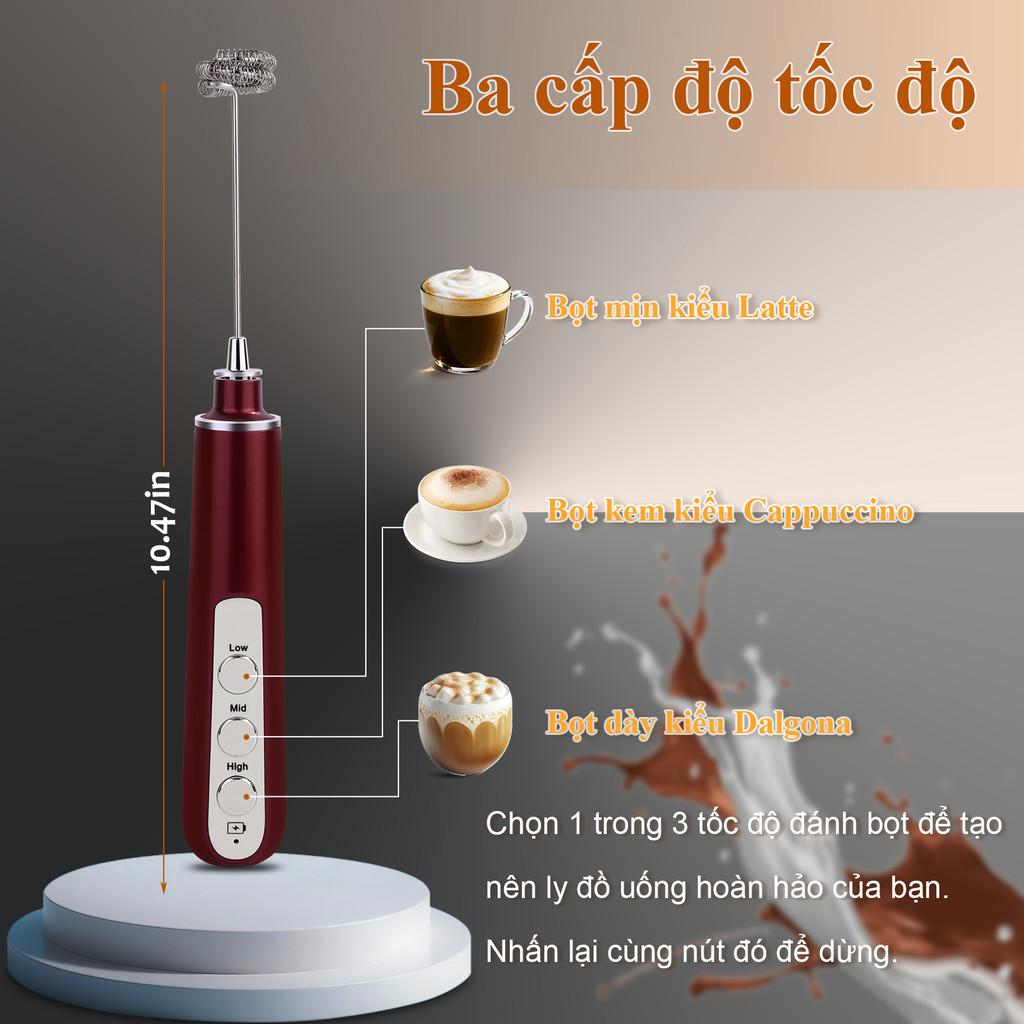 Máy đánh bọt cà phê Dejaf -S2, thép không gỉ, 2 đầu đa năng, sạc USB tiện lợi - Hàng Chính Hãng