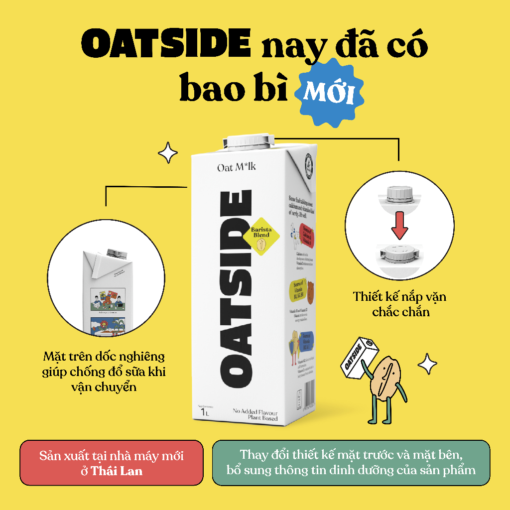Sữa yến mạch OATSIDE vị nguyên bản Barista Blend 1L-Không lactose và chất làm ngọt nhân tạo,Sánh mịn