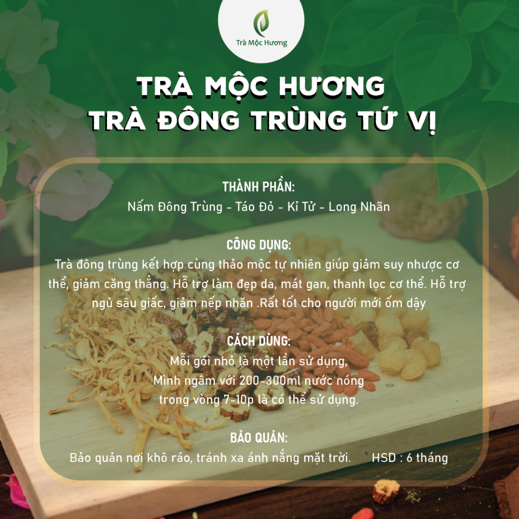 SET 10-20-30 GÓI, Trà Đông Trùng 4 Vị (Kỷ Tử, Táo Đỏ..) Hàng Loại 1, Đông Trùng Hạ Thảo Tứ Vị Giúp Ngủ Ngon