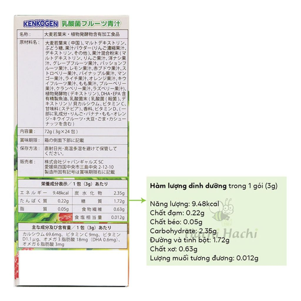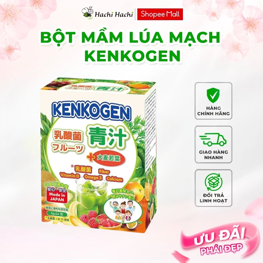 Bột rau củ mầm lúa mạch grass barley Nhật Bản KENKOGEN +16 loại trái cây chất xơ lợi khuẩn vitamin