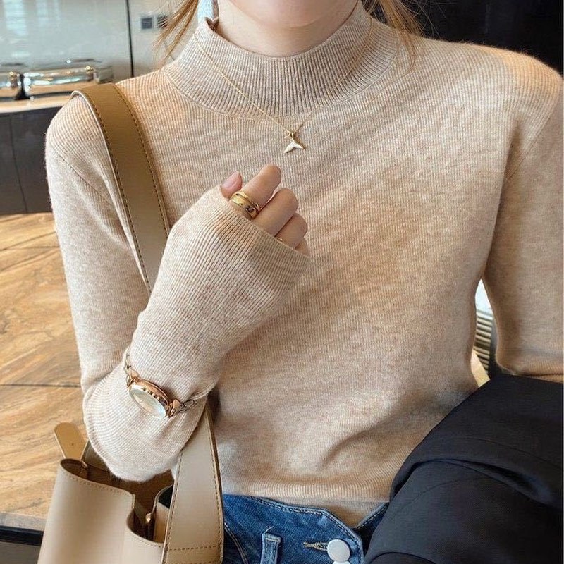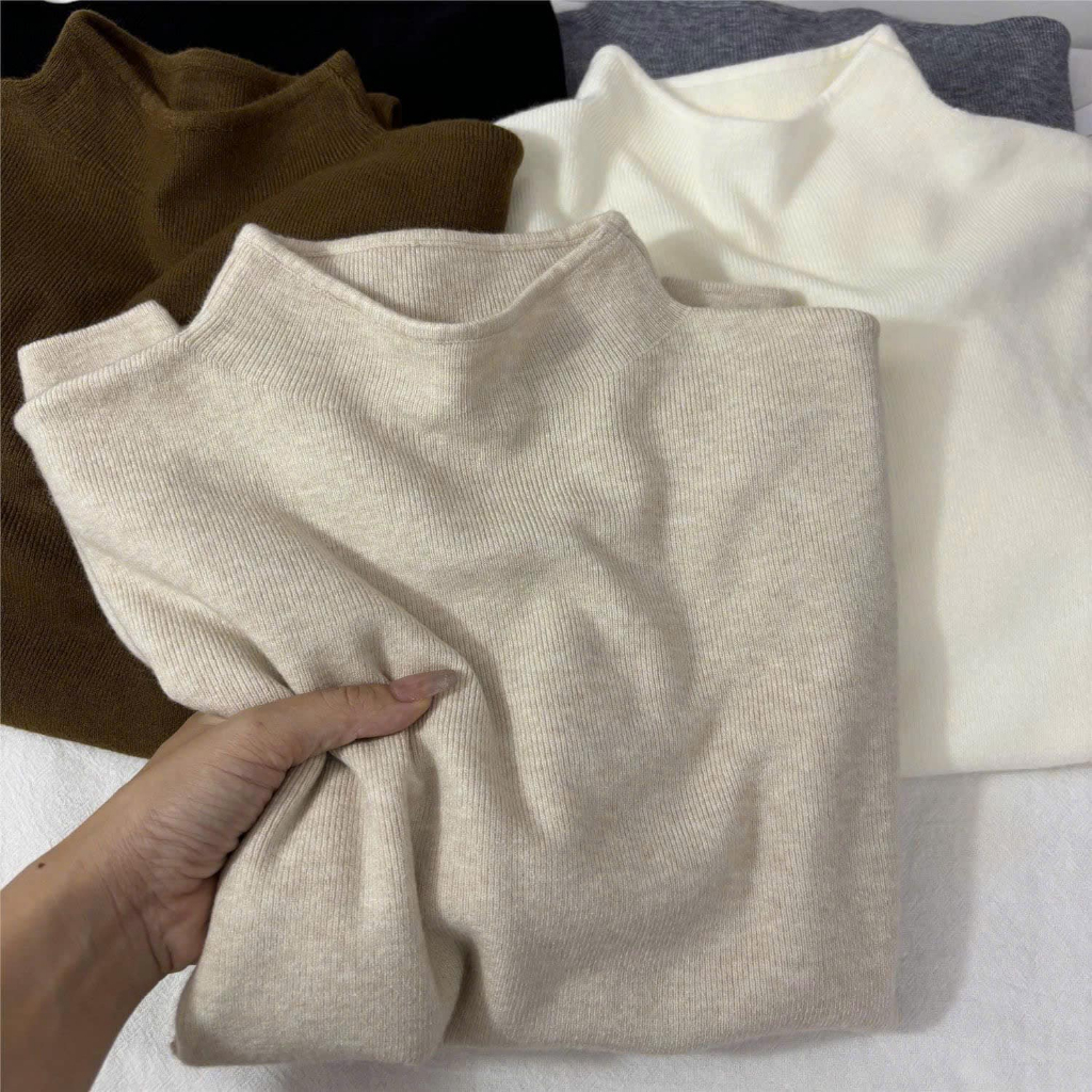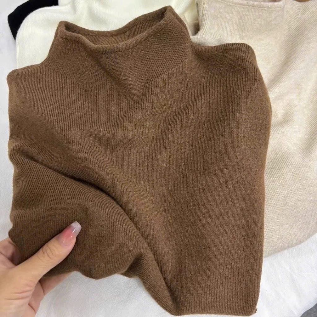 Áo Len Nữ Hitomi Chất Len Tăm Mềm Mại Co Giãn Giữ Ấm, Áo Dài Tay Nữ Cổ Cao 3cm Form Ôm Thời Trang Charmy Shop