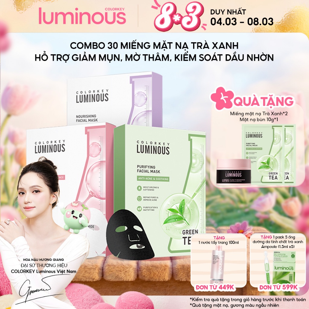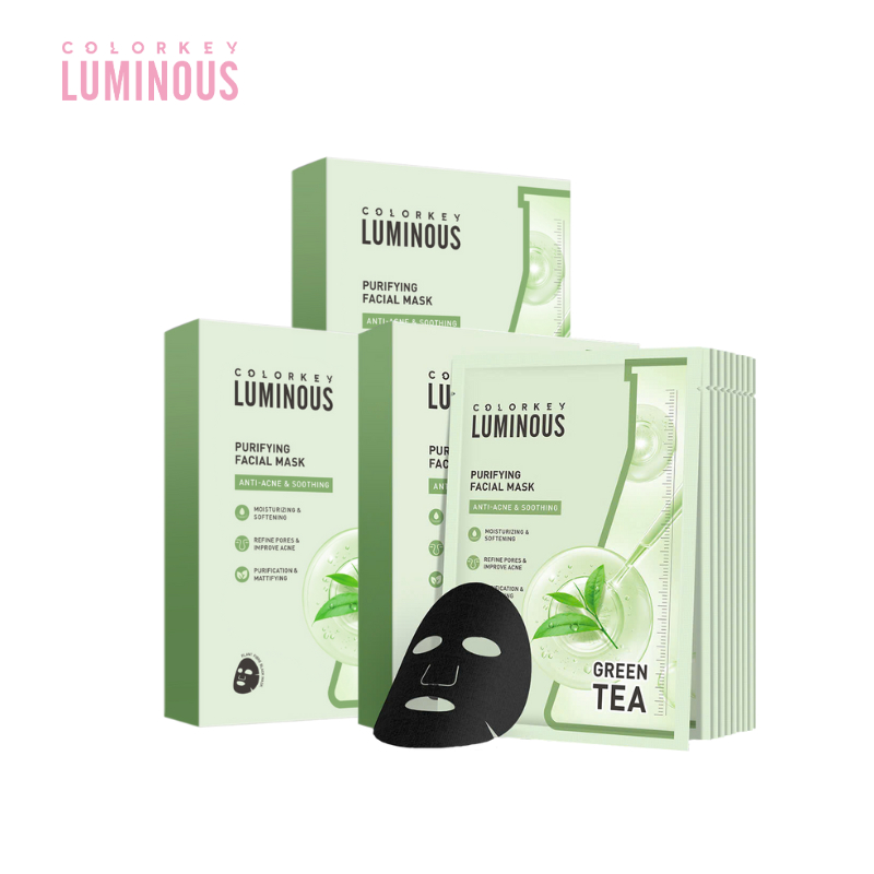 Combo 30 Miếng Mặt Nạ Giấy Trà Xanh BHA COLORKEY LUMINOUS | Hỗ Trợ Giảm Mụn, Giảm Sưng Đỏ | 25ml x 30 Miếng