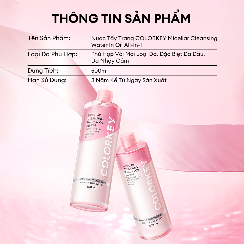 [Mua 2 Giảm 37%]💥 Combo 2 Nước Tẩy Trang COLORKEY LUMINOUS 500ml/ chai,dành cho mặt, mắt, môi, dịu nhẹ cho làn da