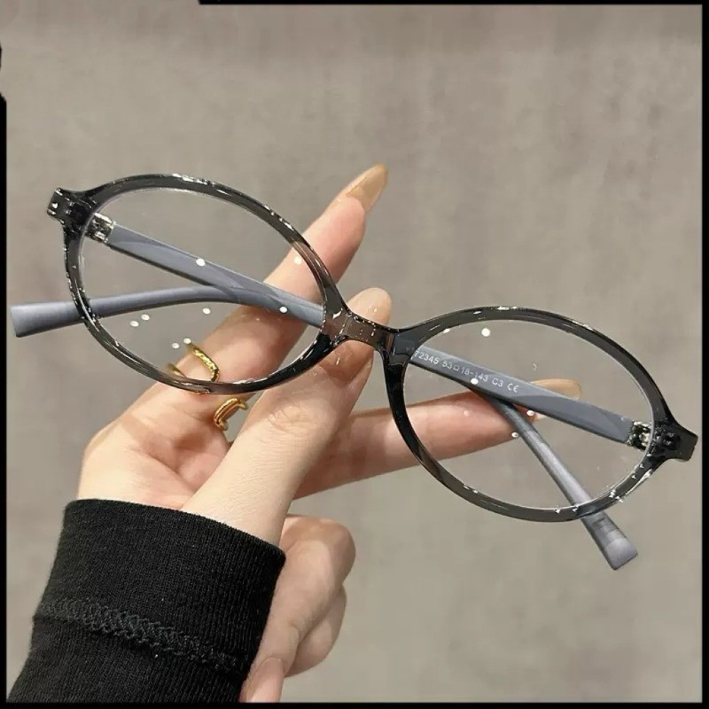 (HENGHA) Kính hình bầu dục màu nâu cổ điển thời trang dành cho nữ Phong cách Hàn Quốc Kính cận thị đầy màu sắc