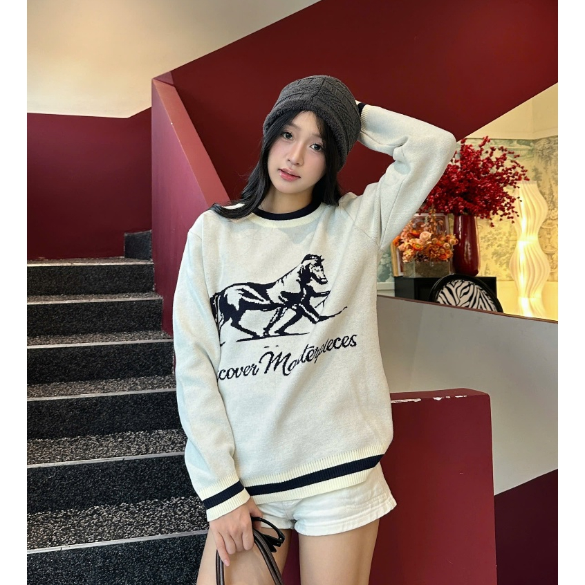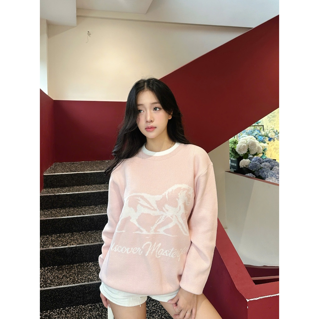 (BST Thu Đông HTIQUE) DEAL mở bán Áo sweater thêu ngựa, Áo len dệt kim năng động DISCOVER MARTERPIECES LA14