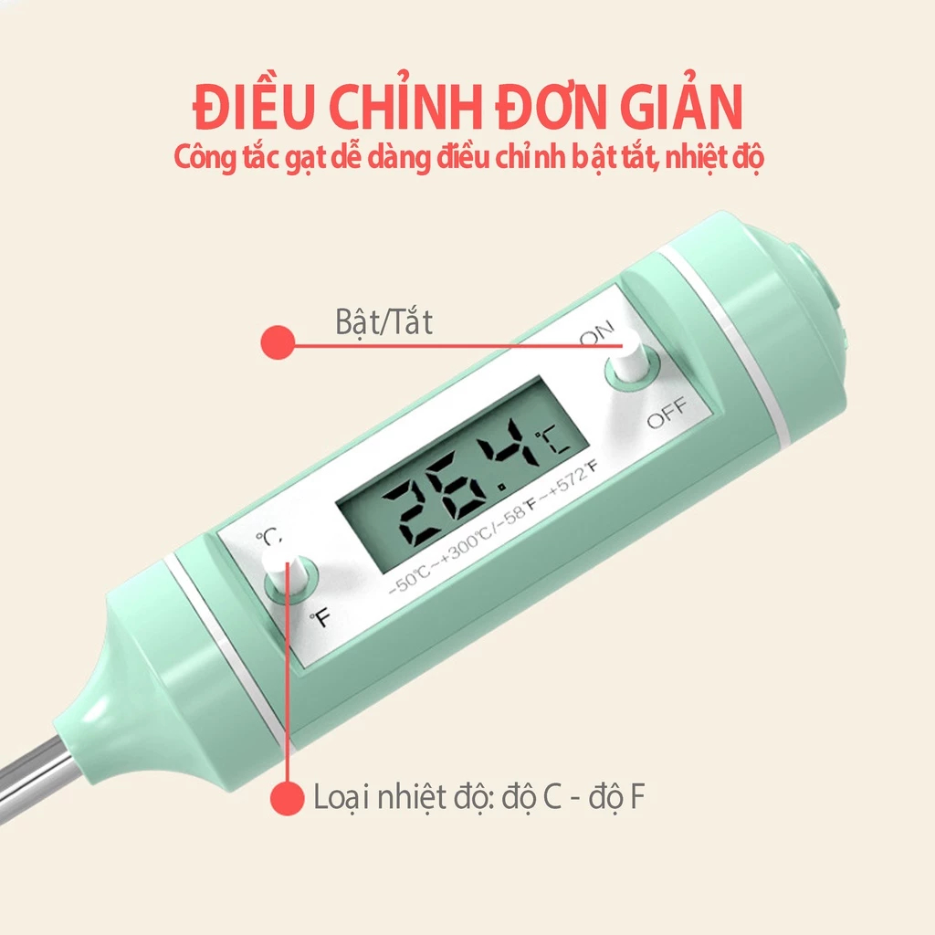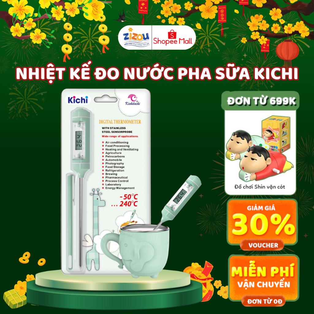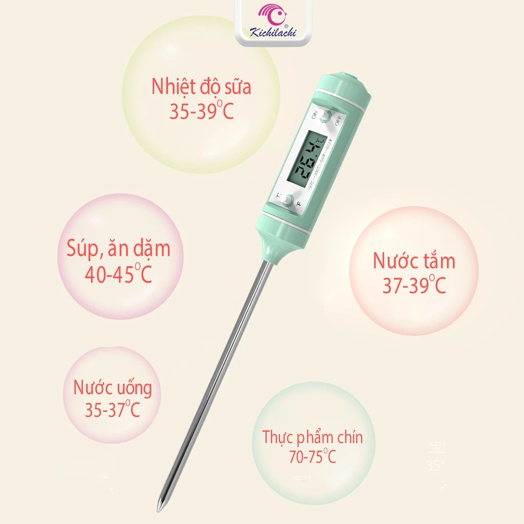 Que Đo Nhiệt Kế Điện Tử Kichilachi - Đo Sữa, Đo Nước, Thức Ăn Cho Bé Từ -50°C Đến 240°C, An Toàn Dễ Dùng Zizou