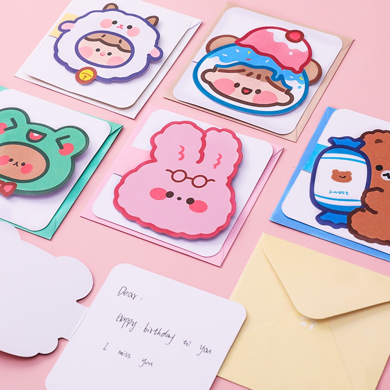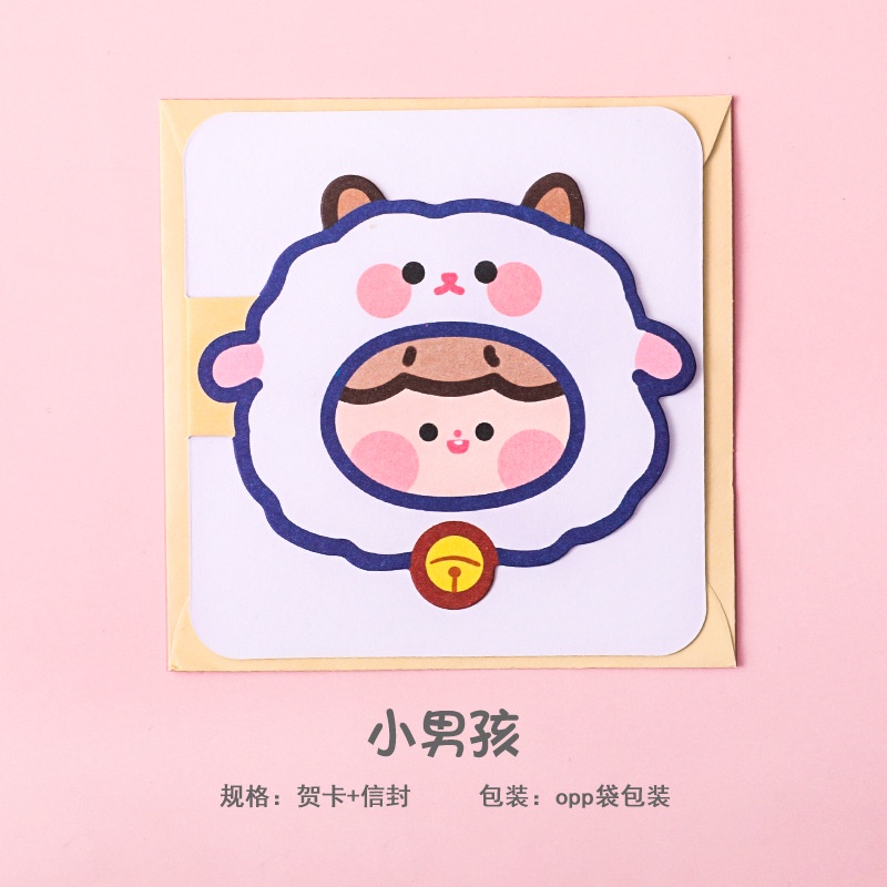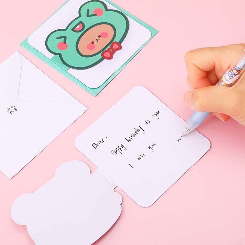 3 Thiệp Chúc Mừng Động Vật Và Cô Bé Kèm Phong Bì 9.3*9.3Cm
