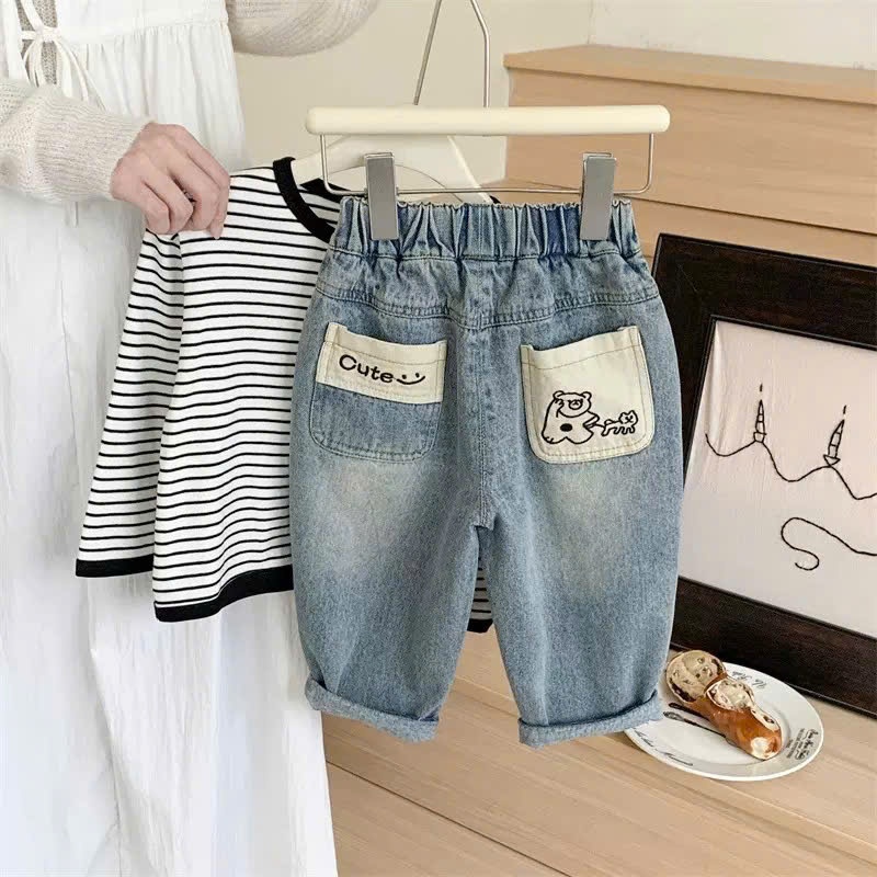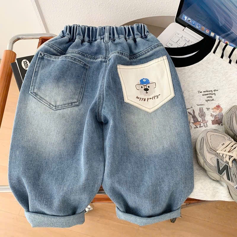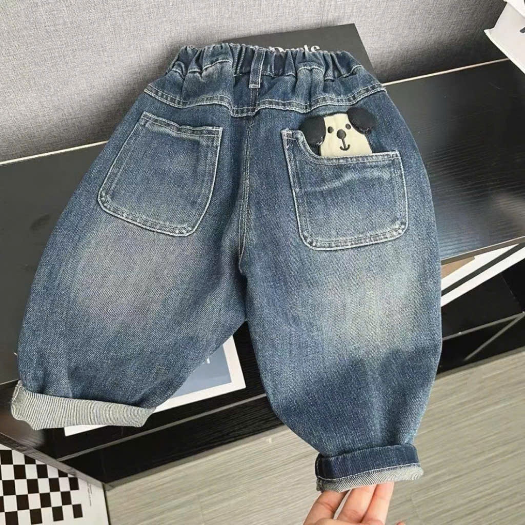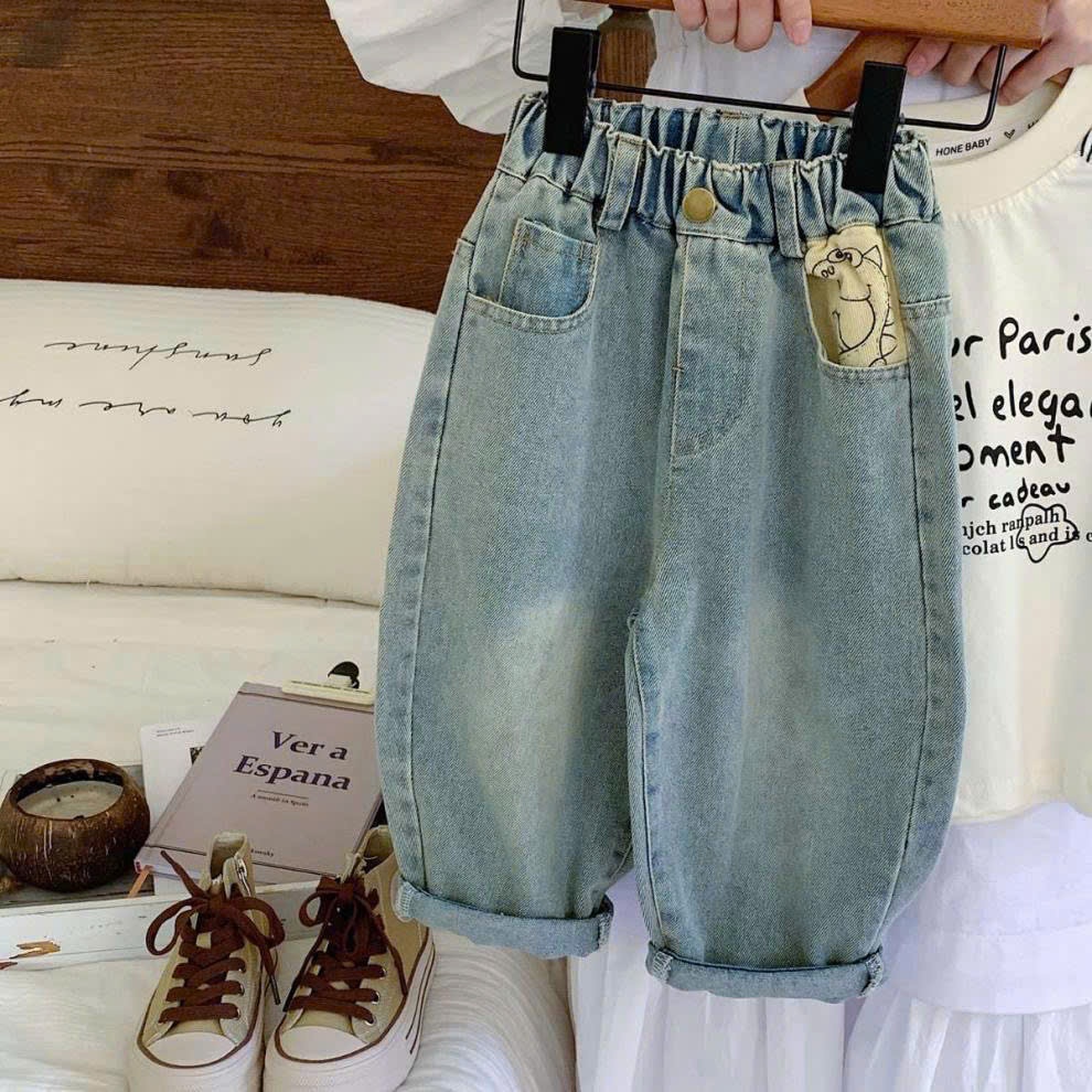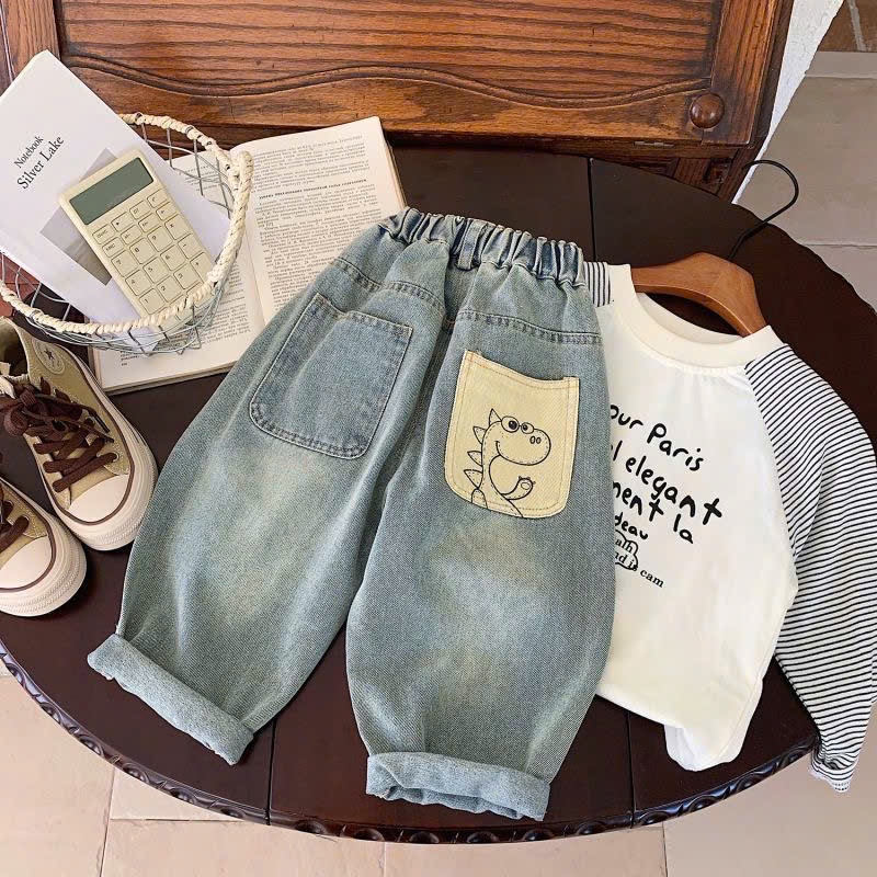 QUẦN JEAN CHO BÉ IN KHỦNG LONG CUTE PHONG CÁCH BAGGY NĂNG ĐỘNG MẶC ĐI HỌC ĐI CHƠI [12-39kg]