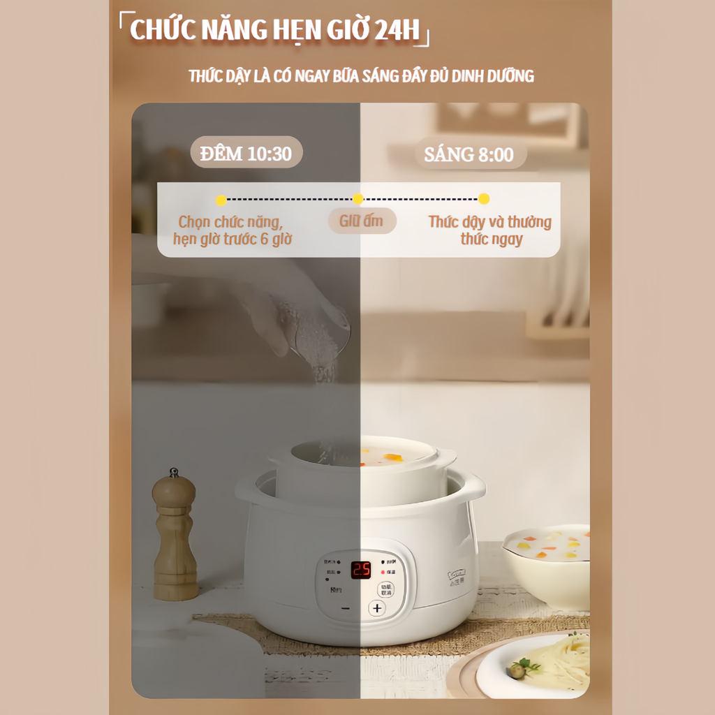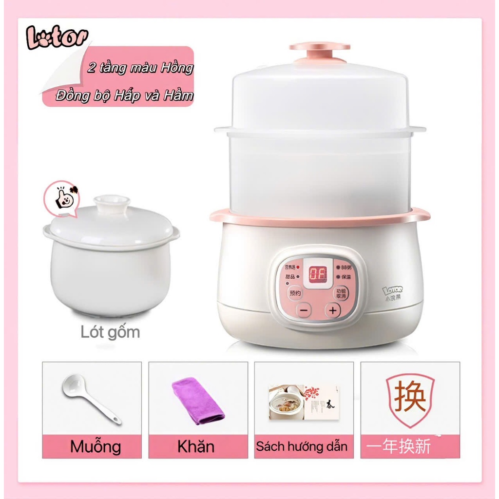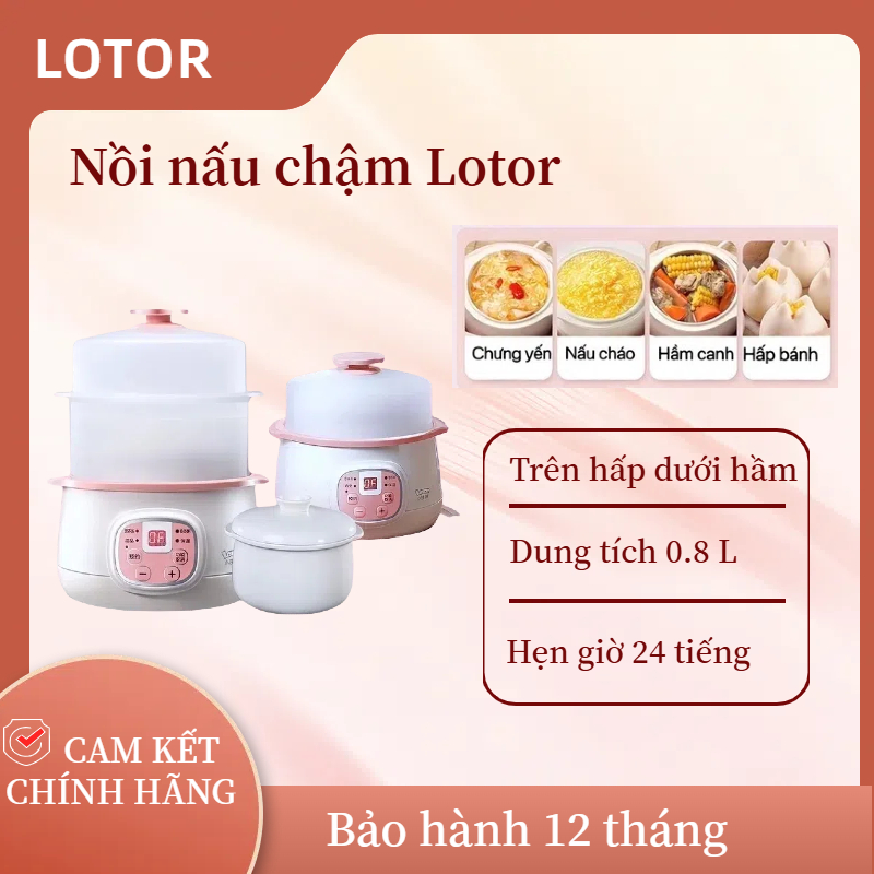 Nồi Nấu Cháo Chậm 0.8L LOTOR Nồi Chưng Yến Cách Thủy, Nồi Nấu Chậm Giữ Nhiệt 8H, Hẹn giờ 24H