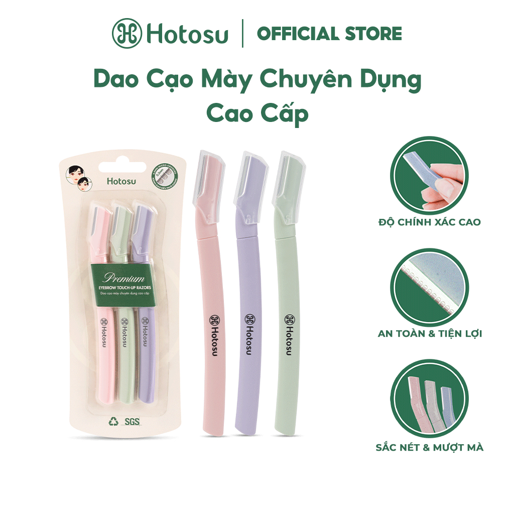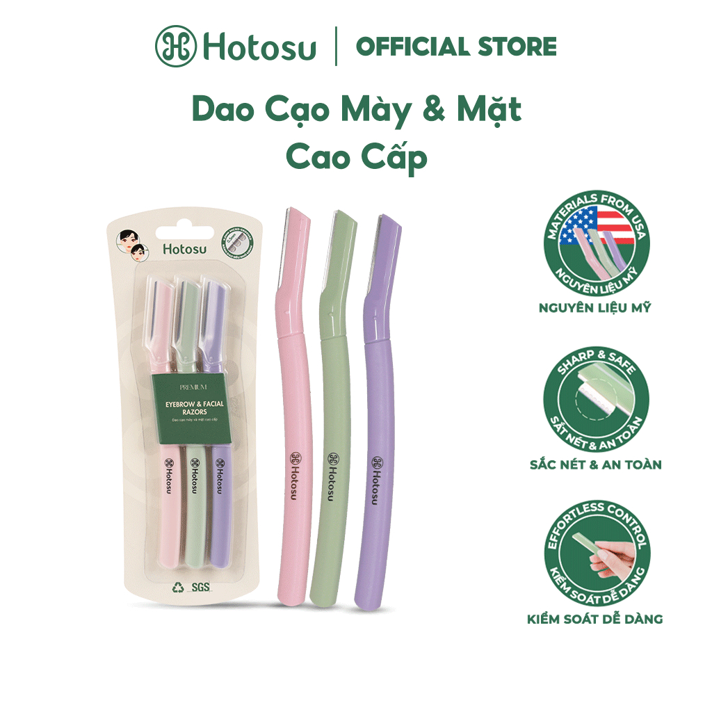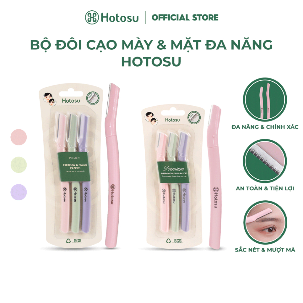 DAO CẠO MÀY VÀ MẶT HOTOSU CAO CẤP PREMIUM EYEBROW & FACIAL RAZORS (3 CÂY NHIỀU MÀU)