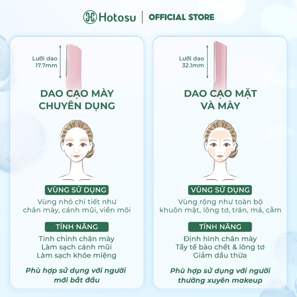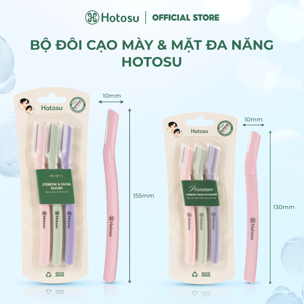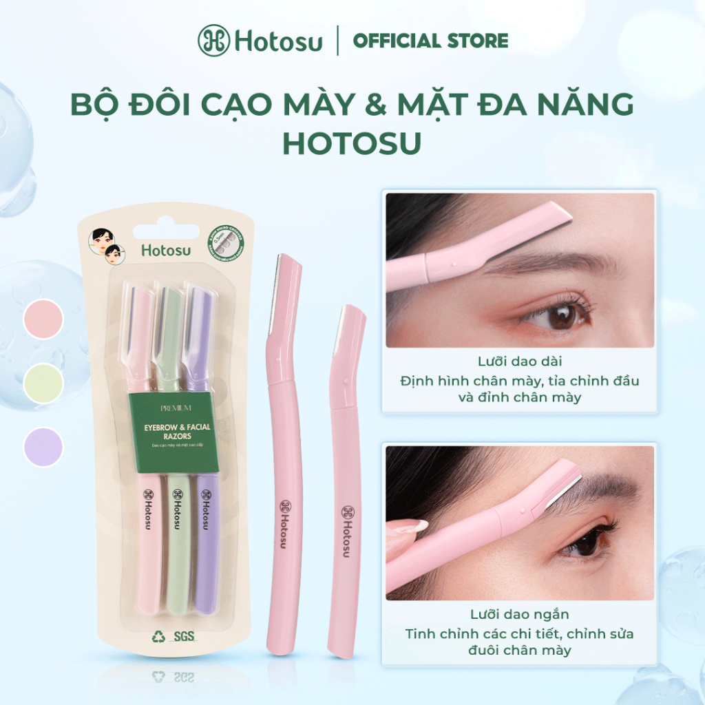 DAO CẠO MÀY VÀ MẶT HOTOSU CAO CẤP PREMIUM EYEBROW & FACIAL RAZORS (3 CÂY NHIỀU MÀU)